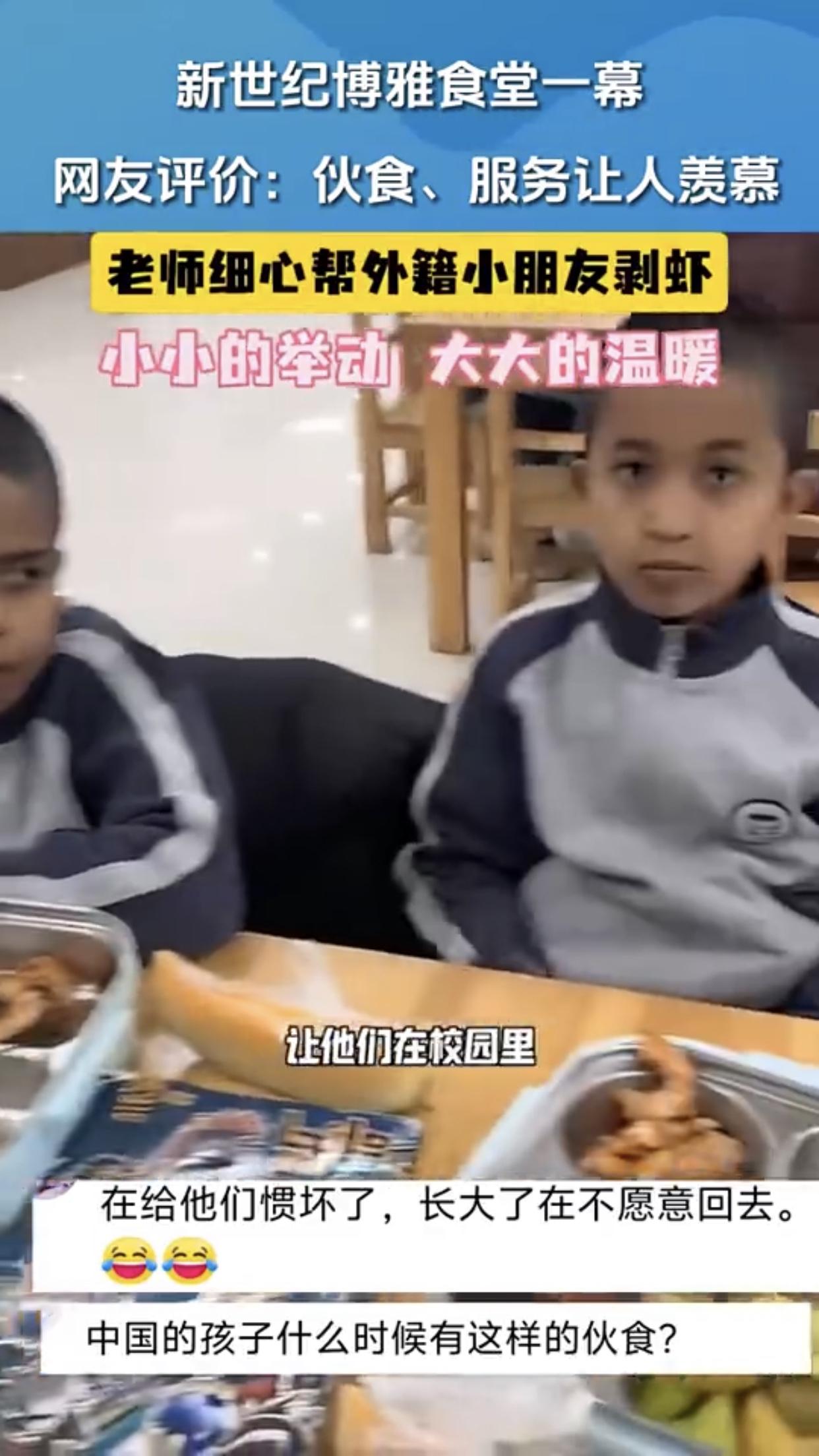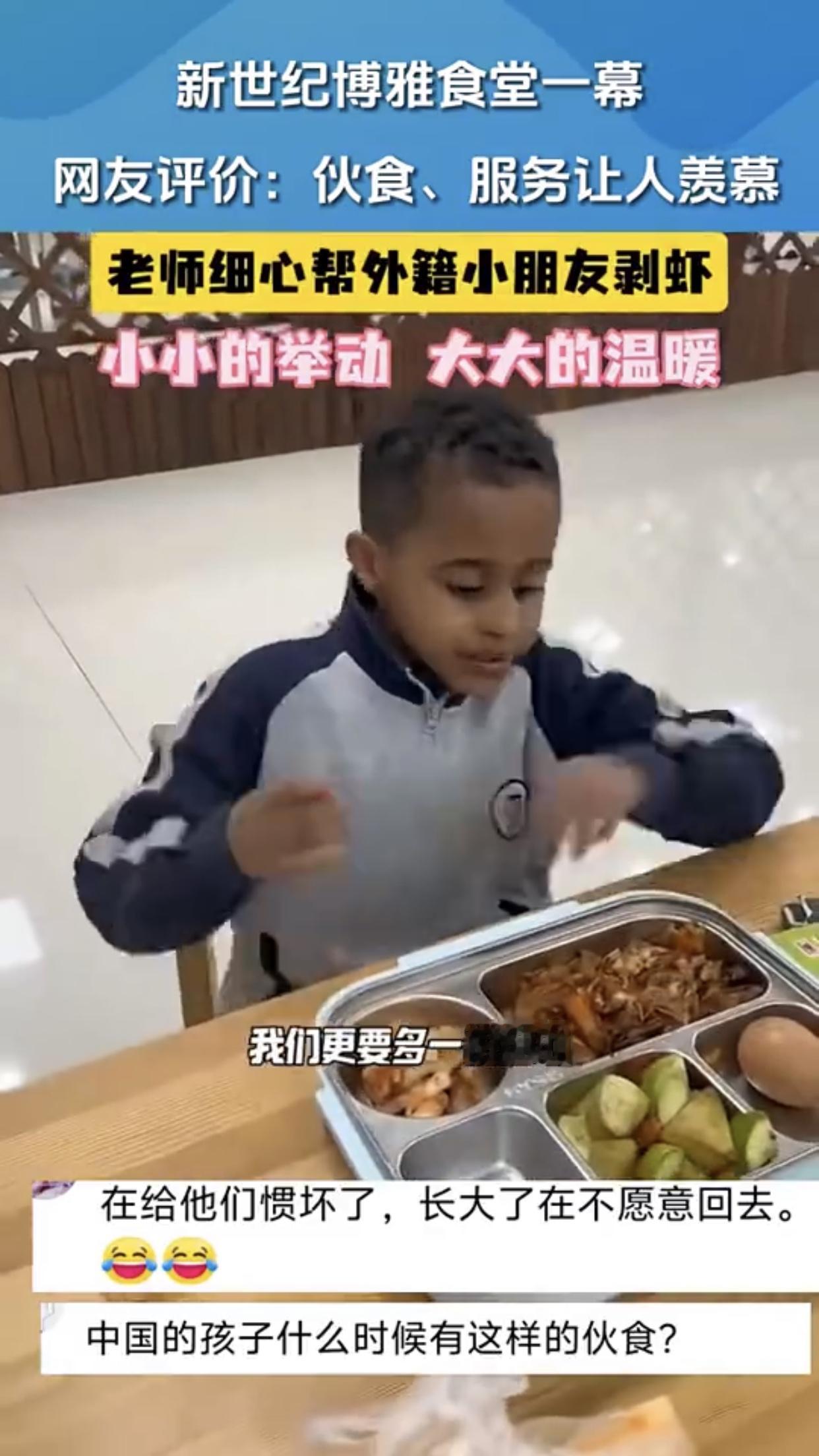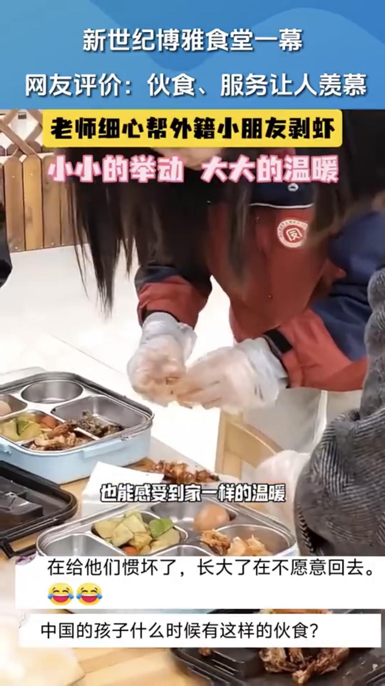 如果要剥虾,就应该给学校里全部的小朋友都剥,别整些有的没的,因为是外国学生所以要特殊待遇这种方式,搞得好像我们自己国内的学生低人一等似的,还把自己给整感动了!