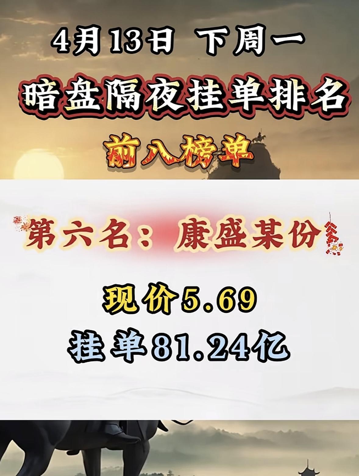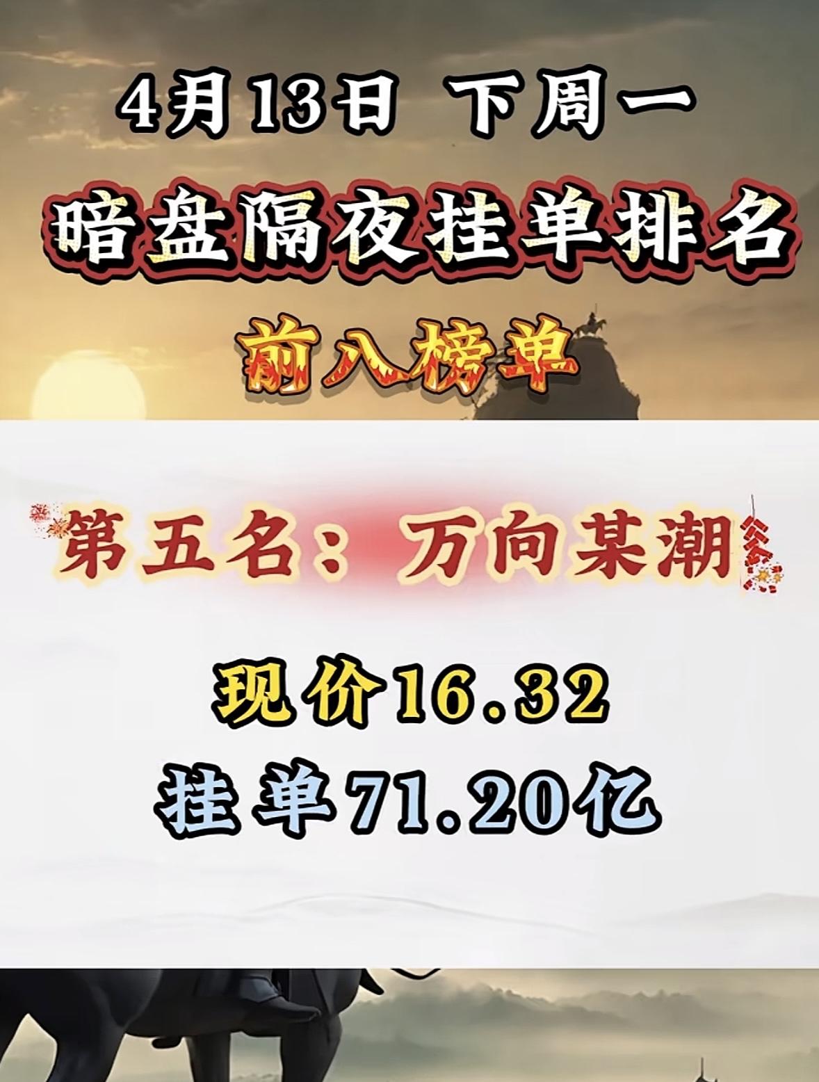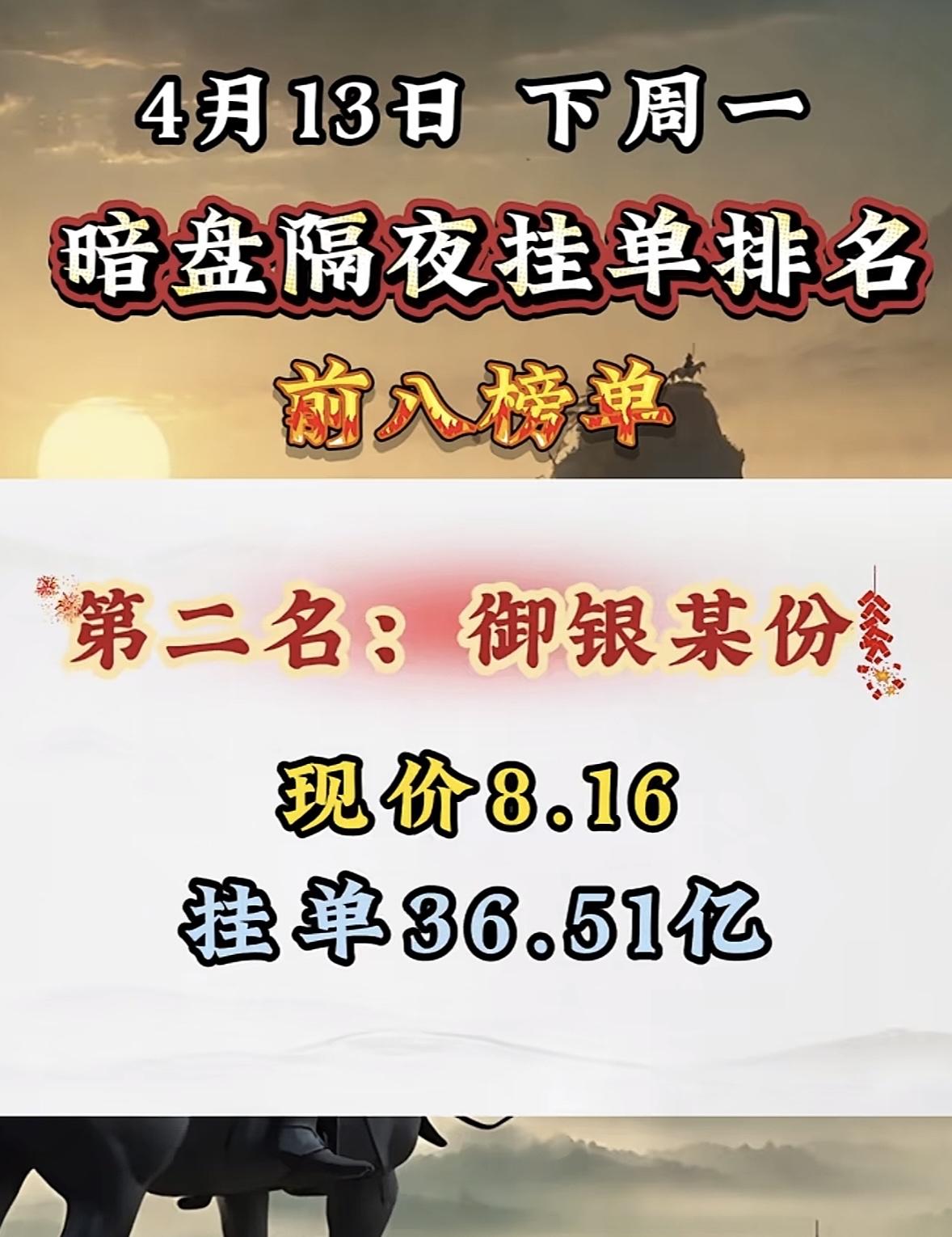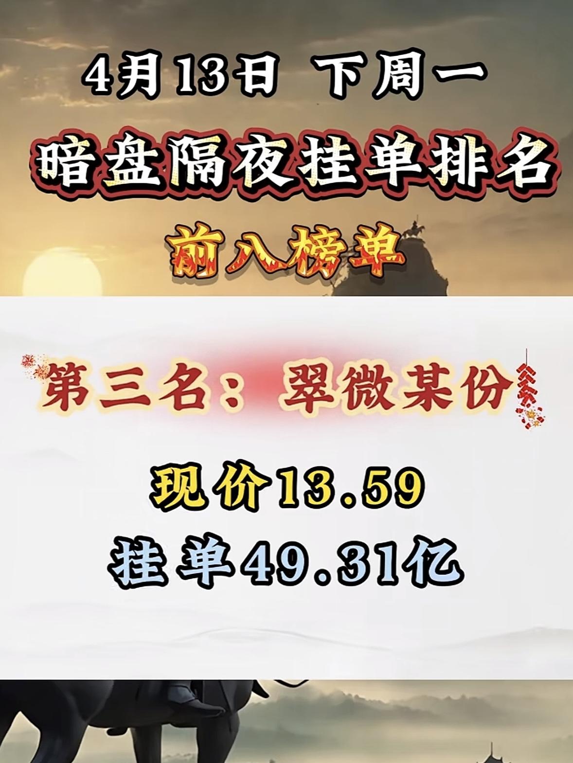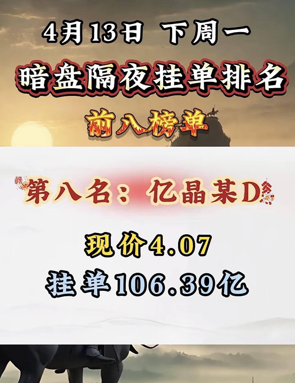 4月13日周一暗盘隔夜挂单排名揭晓 亿晶光电强势上榜,这可太让人关注了!此前周