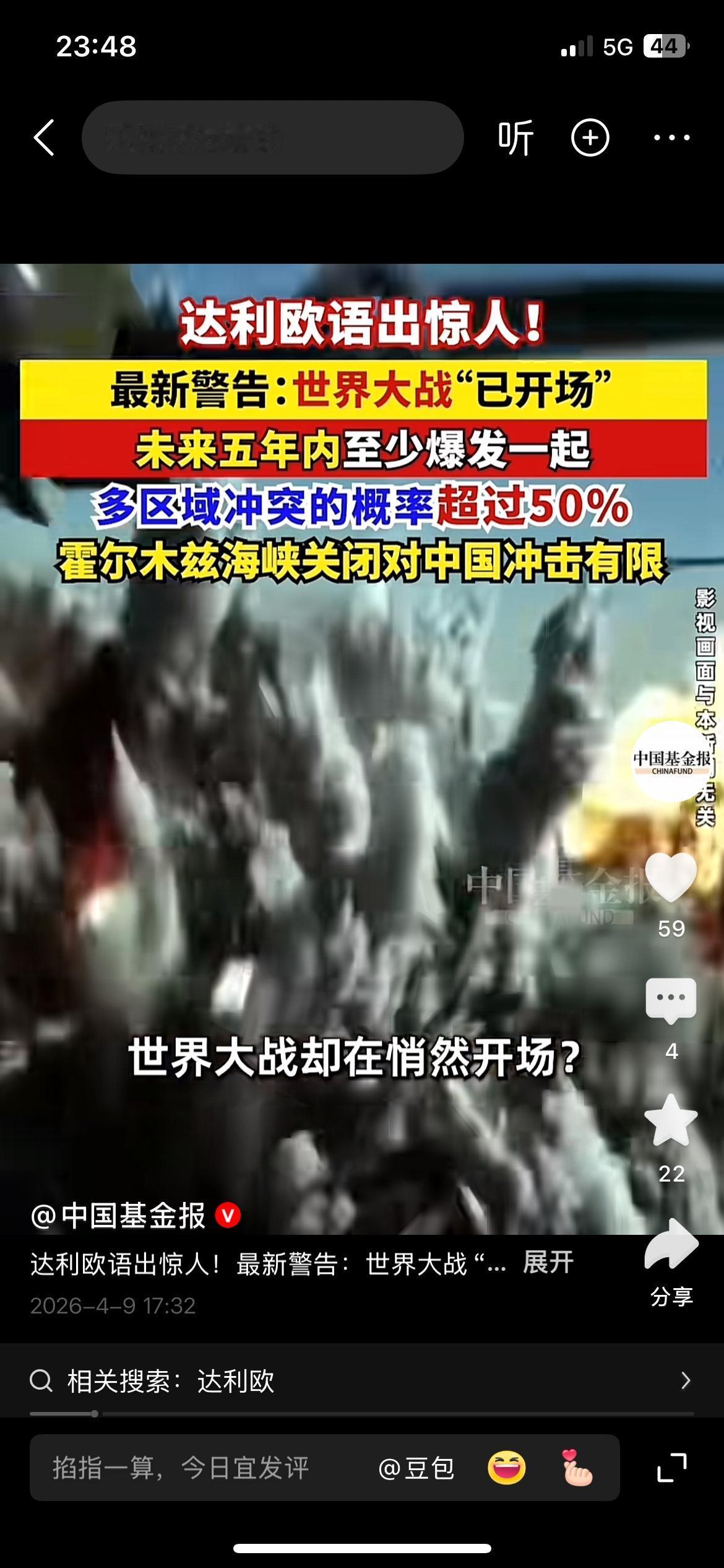 达利欧重磅警告:全球冲突已经开场,风险越来越大