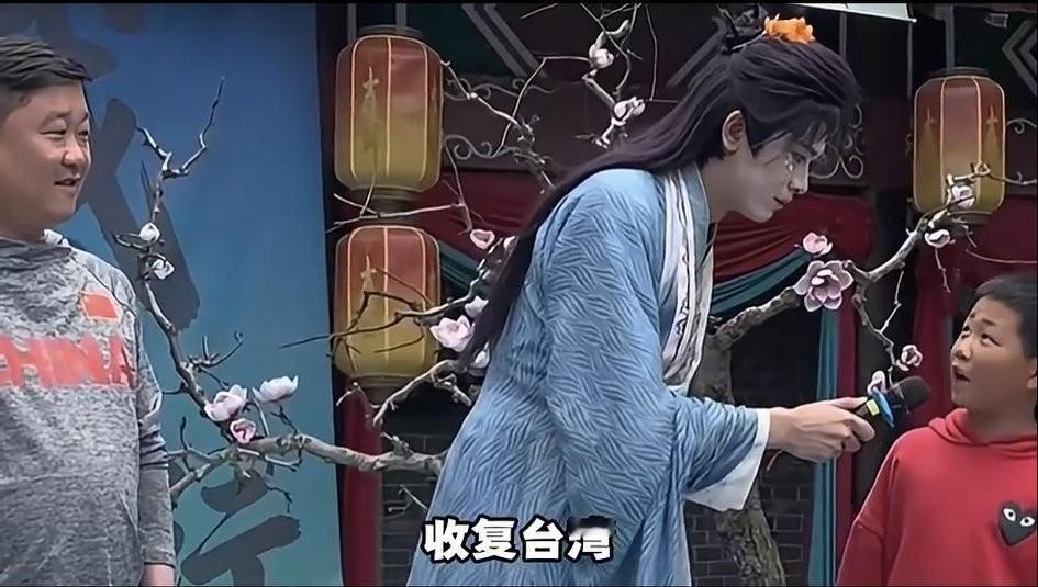 又问:哪四个字听了就热血沸腾,有位男士回答迪丽热巴,小孩哥回答收复台湾!
