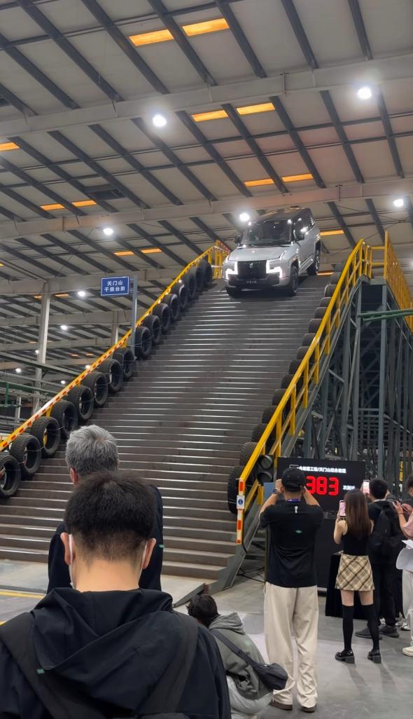其实说白了就是在室内玩转极限越野!要知道该中心配备 30 余套专业测试工装,复刻了天门山天梯、成佛坡、狮背山等全球顶级越野名场面。相比传统户外测试,这里彻底摆脱了天气、地域限制,可实现全天候、高频次、可重复的极限工况验证,专业性这块杠杠滴。