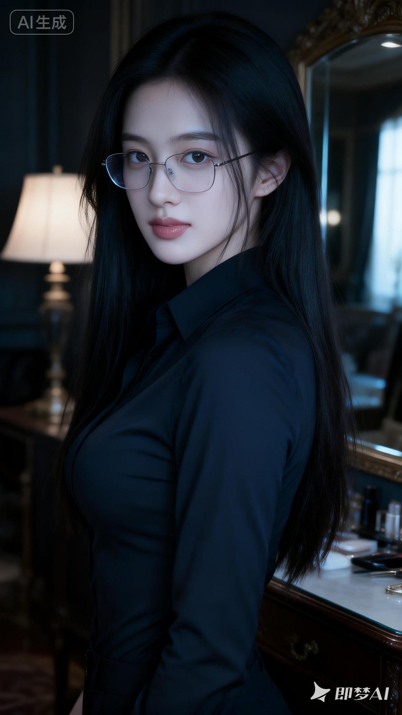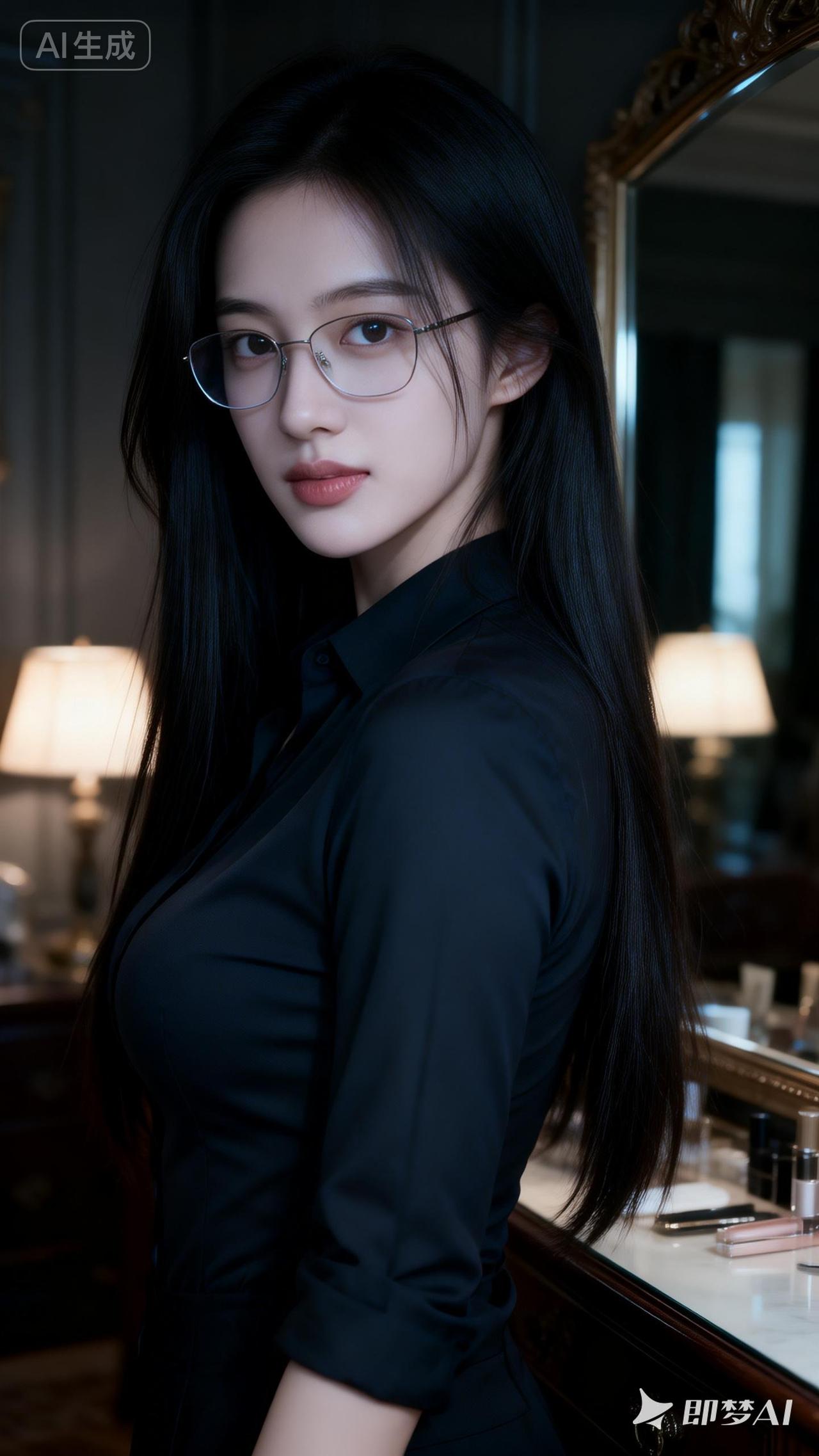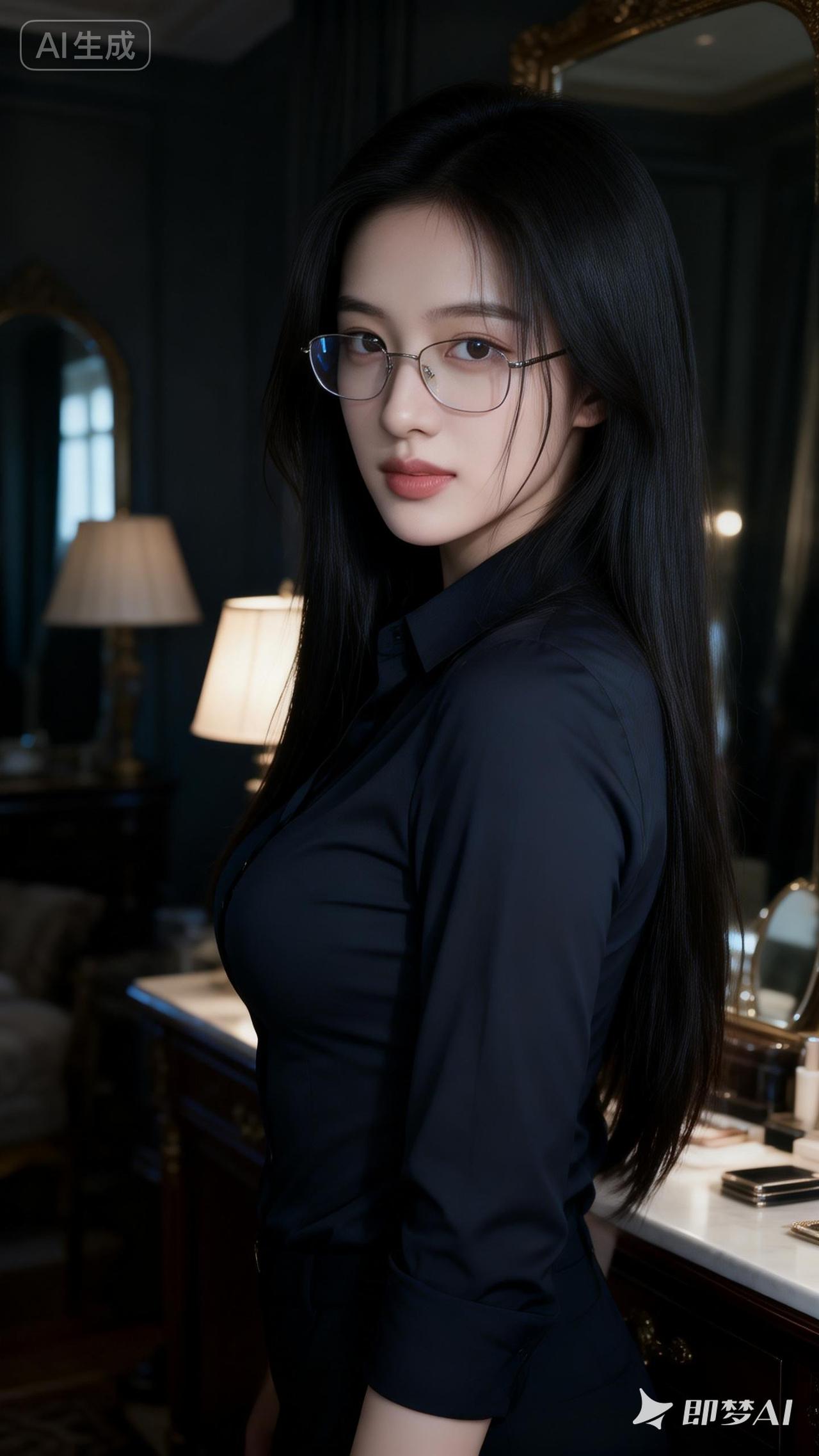 优雅气质,轻奢穿搭,复古铁艺围栏,时尚眼镜,自然妆容,轻松优雅。