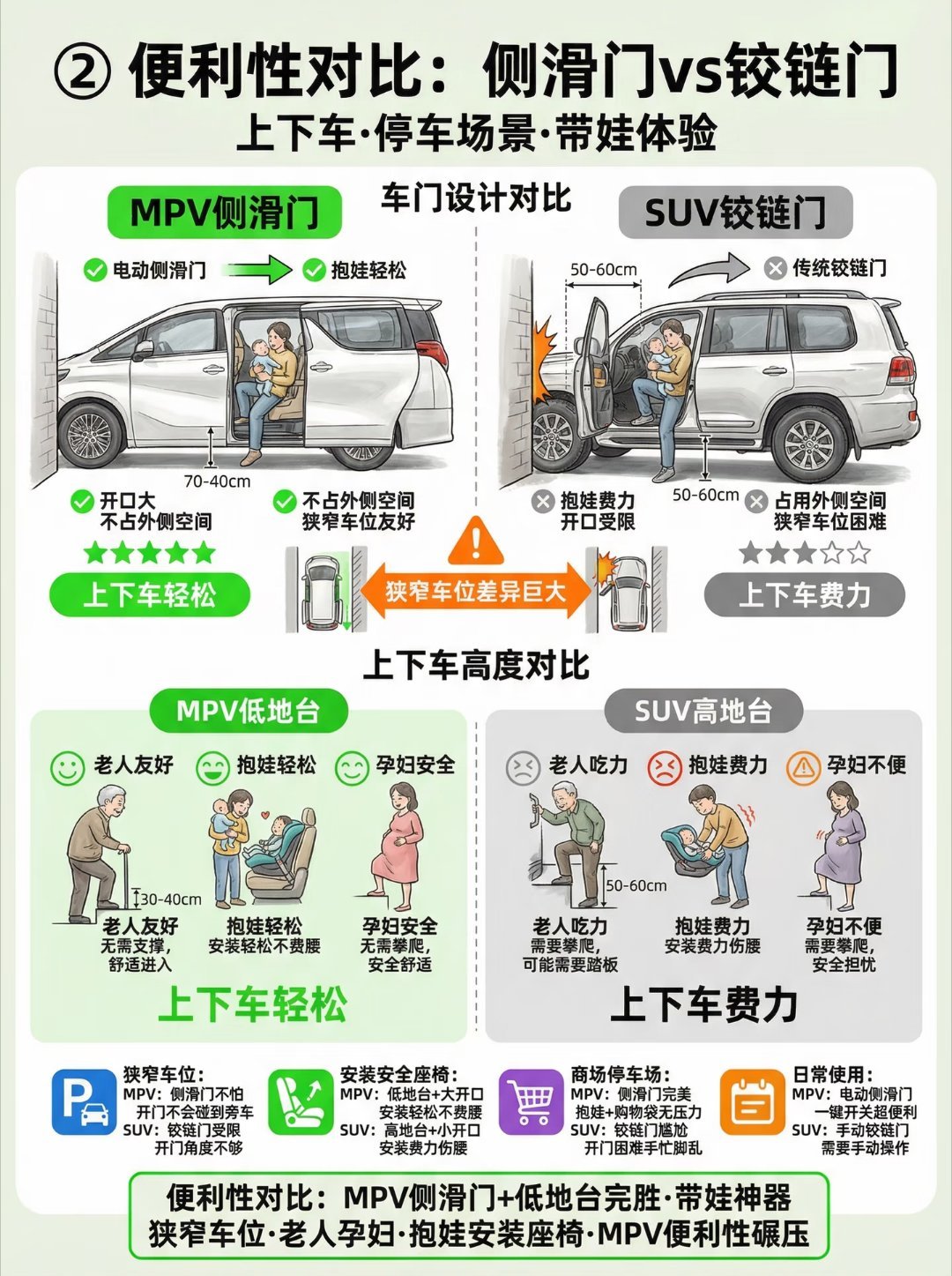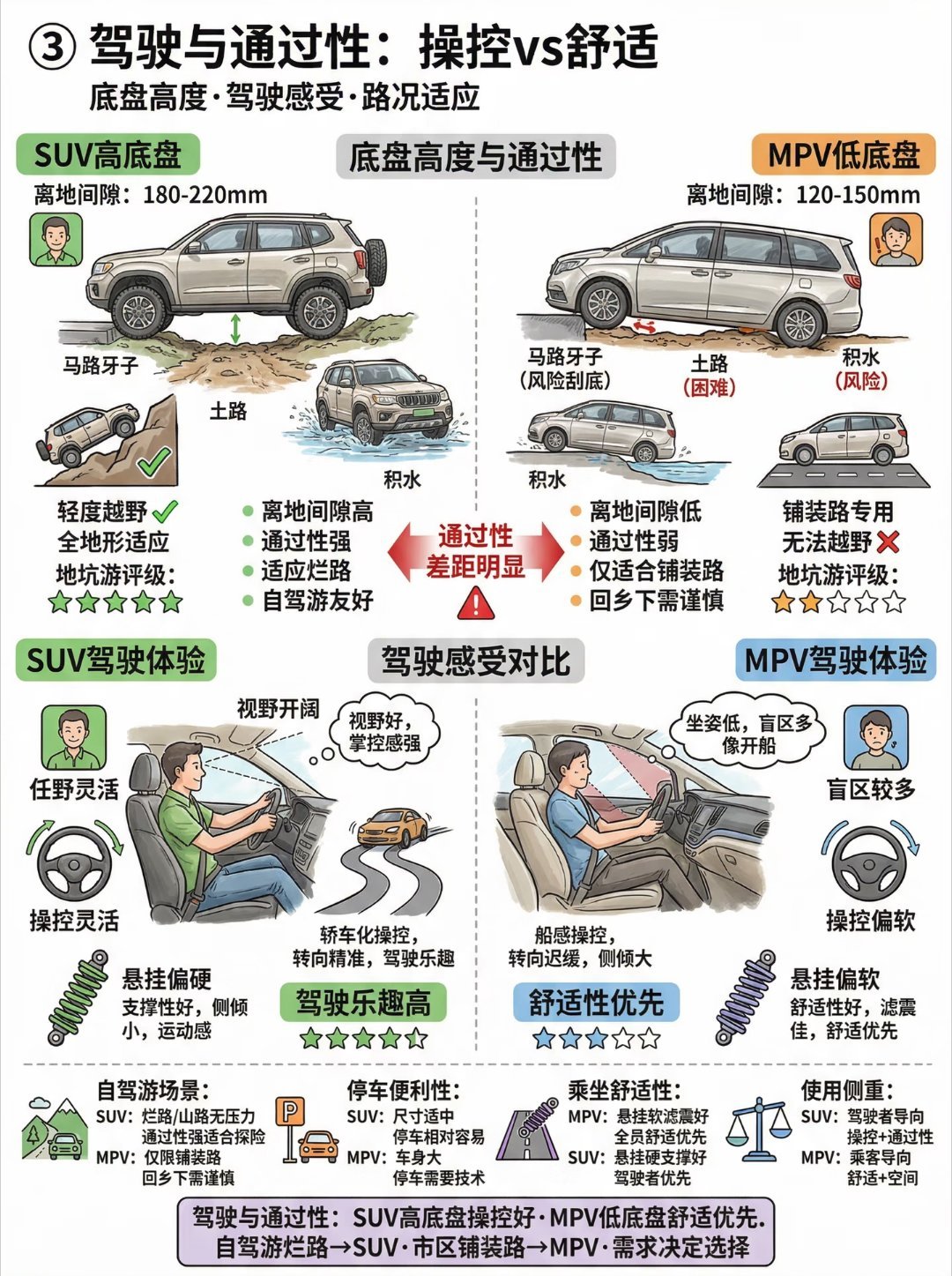 SUV能替代MPV吗 SUV是在兼顾,MPV是在照顾。你要的是体面,SUV就够了。你要的是全家都舒服,MPV还是更专业。