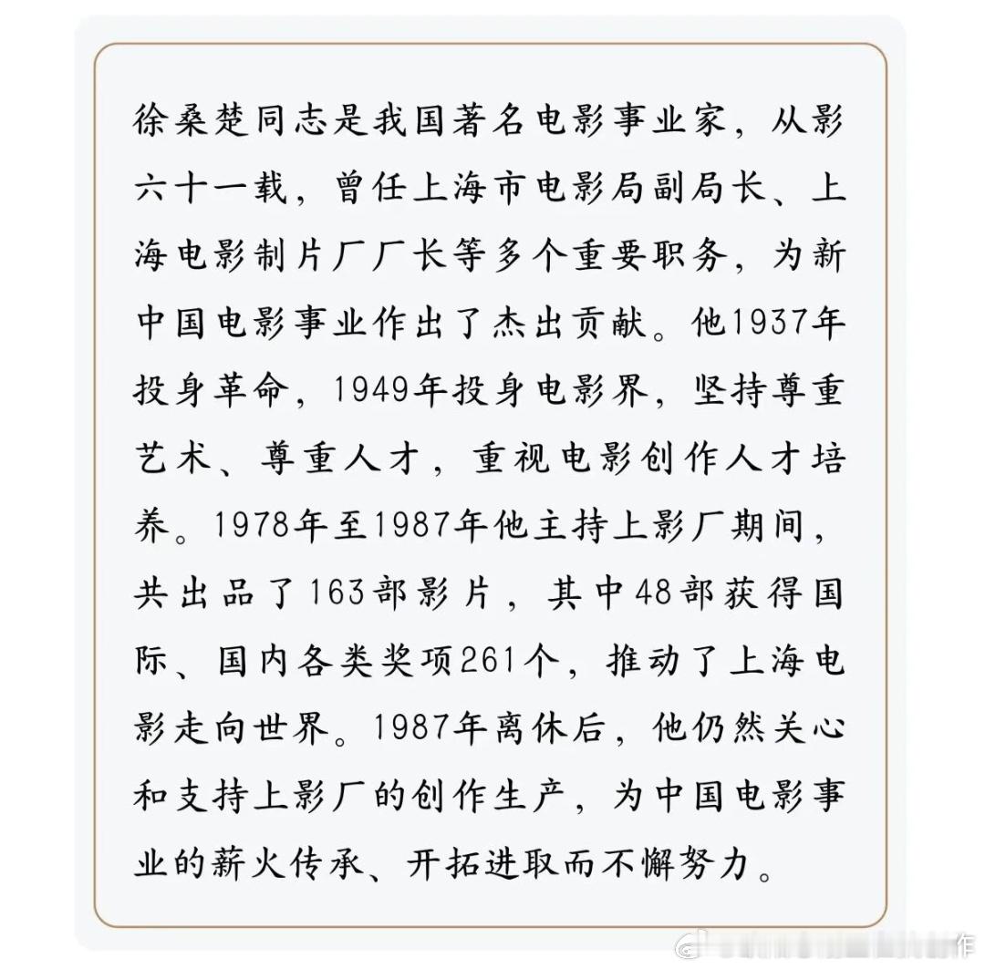 徐桑楚1978~1987年担任上影厂的厂长,那段时间是电影的黄金时期,但也别忘了,像上影拍的《405谋杀案》《天云山传奇》《牧马人》《芙蓉镇》《苦恼人的笑》《巴山夜雨》《T省的84、85年》等等电影,放到现在很难过审,但在当年,其实也不是那么容易过审的,这个时候厂长敢于担责就显得非常重要了,很多电影从立项到拍摄,整个过程都伴随着非议,甚至阻扰,厂长要替导演挡掉很多事情。《芙蓉镇》小说拿了茅盾文学奖,好几家电影厂都想拍,但遇到很多阻力,后来都无声无息了,最后只有上影厂拍成了,这中间需要做很多工作。如果厂长首先是免责心态,多一事不如少一事,那就只拍那些绝对安全稳妥的片子就行了。有担当太重要了。