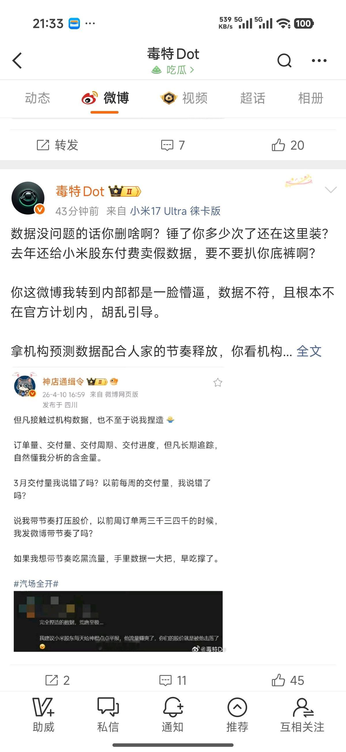 借着小马甲和will来说说吧,首先是小马甲,我跟马甲是2022年在知乎认识的,他做微博比我早多了,如果有小马甲老粉应该都知道,这哥们挖掘信息是有一手的,并不是靠小红书抖音转发的“爆料博主”。他没成为大v的核心原因,除了不能准时准点公布数据以外,最重要的是缺乏数据分析能力