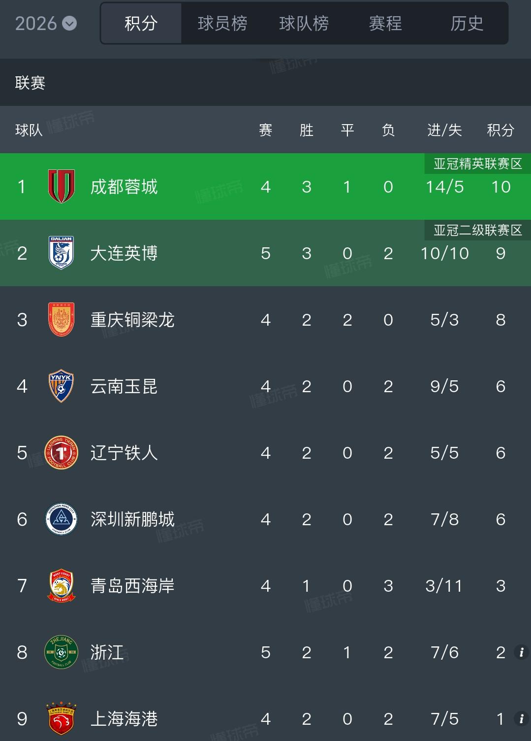 太意外了!大连英博竟然排中超积分榜第2了!