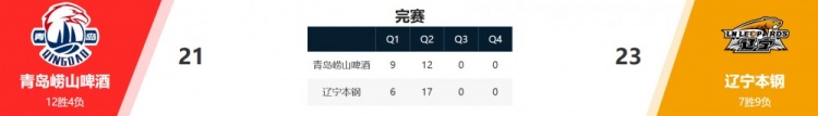 青岛21-23不敌辽宁。