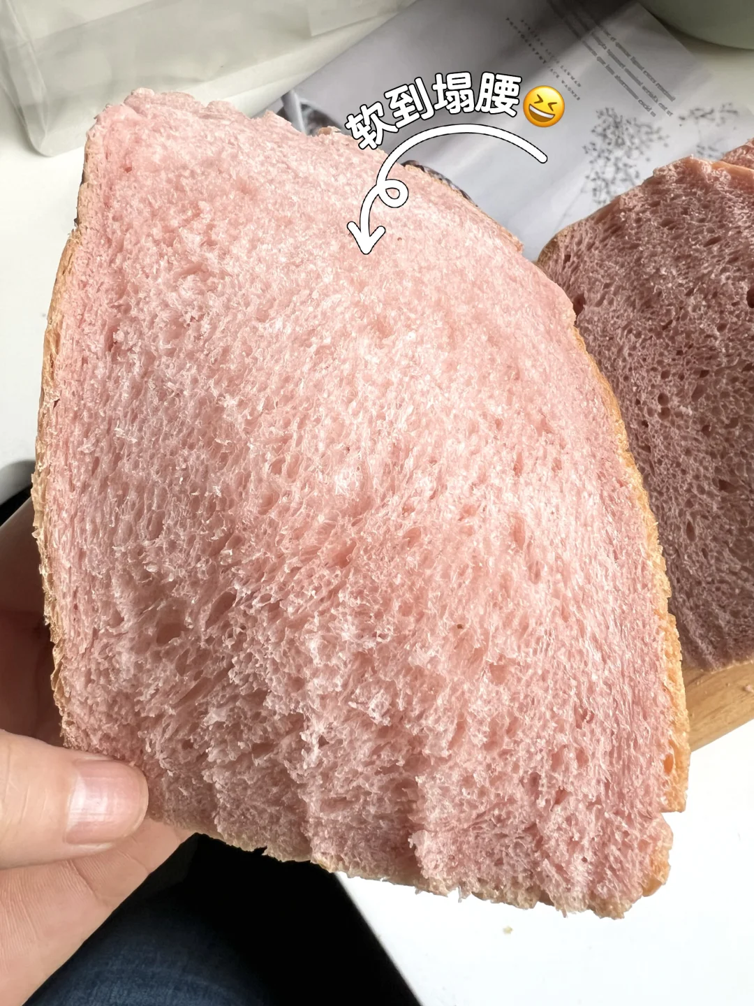 面包体柔软细腻、有弹性,满满的草莓的香气,太治愈啦![派对R][派对R][派对R]