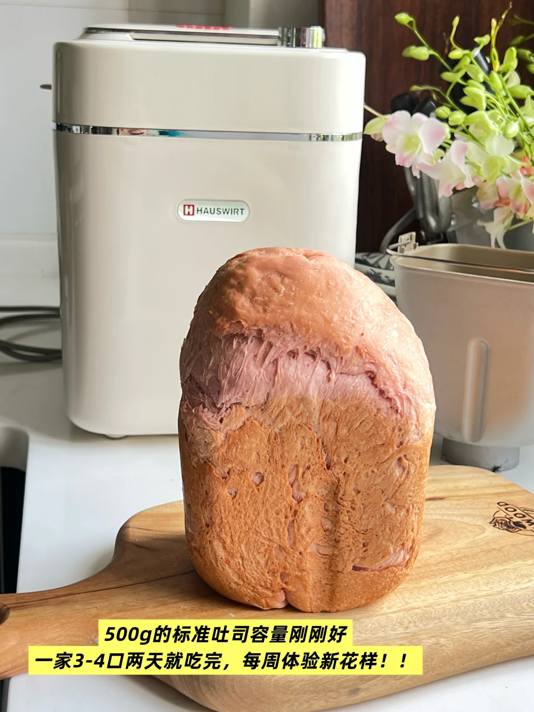 对于3-4口的家庭来说,500g的标准吐司容量大小刚刚好,基本1-2天就可以吃完了。不用担心面包不够吃或者吃不完变干、变硬。我家就是每周换着花样做各种面包、三明治,常换常新——这才是面包机“不闲置”的真正秘诀呢!