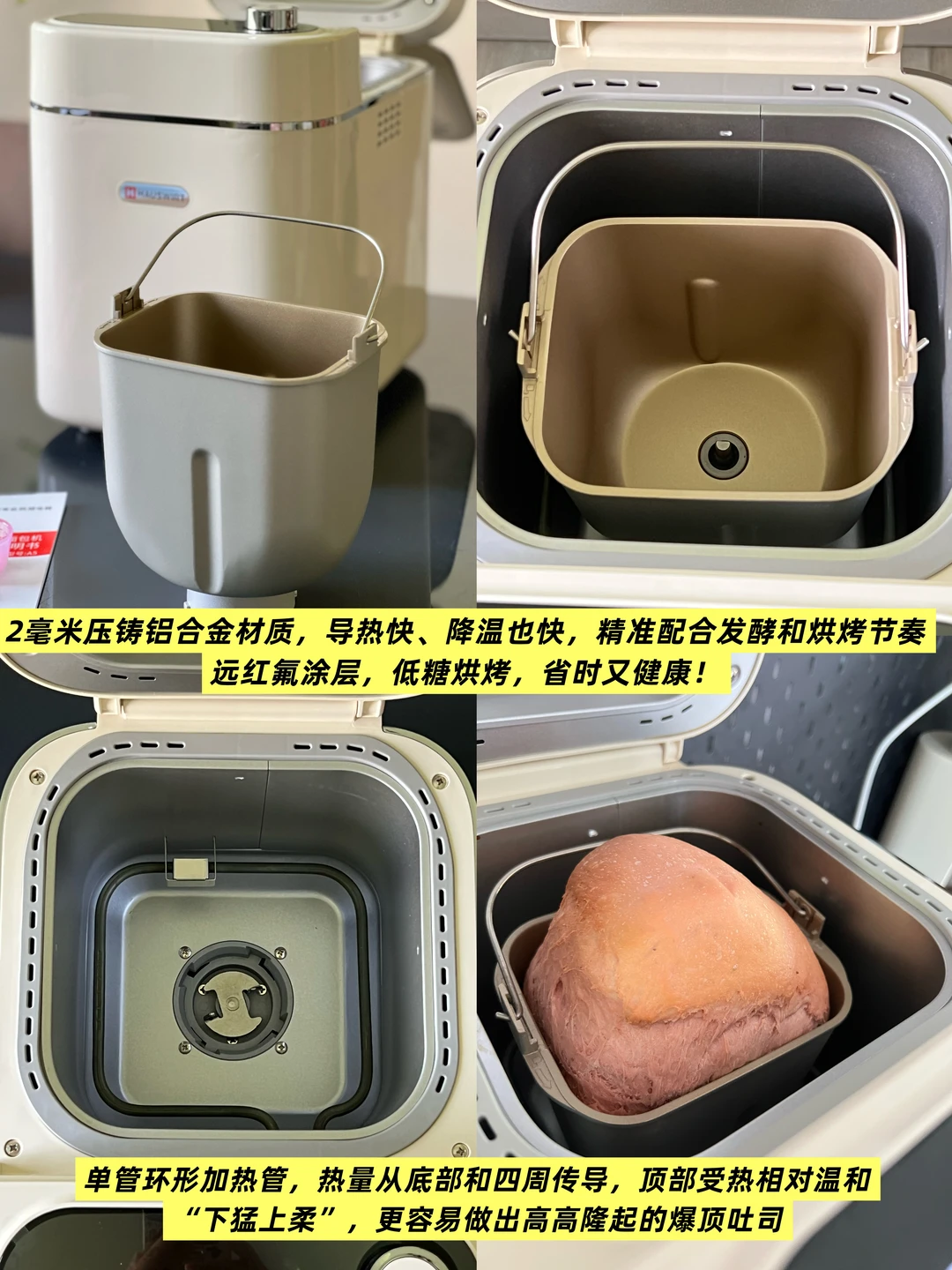 海氏A5面包机采用2毫米压铸铝合金材质,导热快、降温也快,能精准配合发酵和烘烤节奏。太厚反而升温慢、热惯性大,影响发酵和烘烤节奏,降温也慢,烤完容易焖过头、皮厚发硬。所以,不是越厚越好,受热均匀、工艺靠谱才是关键。