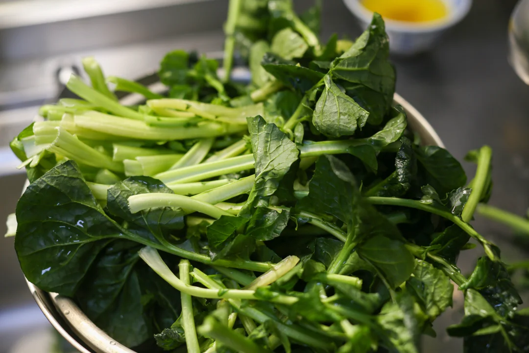 叶子绿得发黑,梗子脆生生的。每年也就这个时候有,过了清明没几天就老了,想再吃,得等来年。