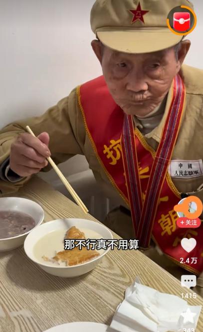 可老板娘比他还执拗,摆摆手说:“嗨,别说15个人,就是来20个,我也一分钱不收!我是土生土长的丹东人,从小就听着抗美援朝的故事长大,我姥爷也当过兵、打过仗,我太清楚你们老一辈的不容易了,现在咱们能安稳过日子,能安心开店,全是你们拿命换回来的!老英雄能来我这小破店吃饭,那是我的福气,是我们小店的荣耀,这顿饭,必须我请”!