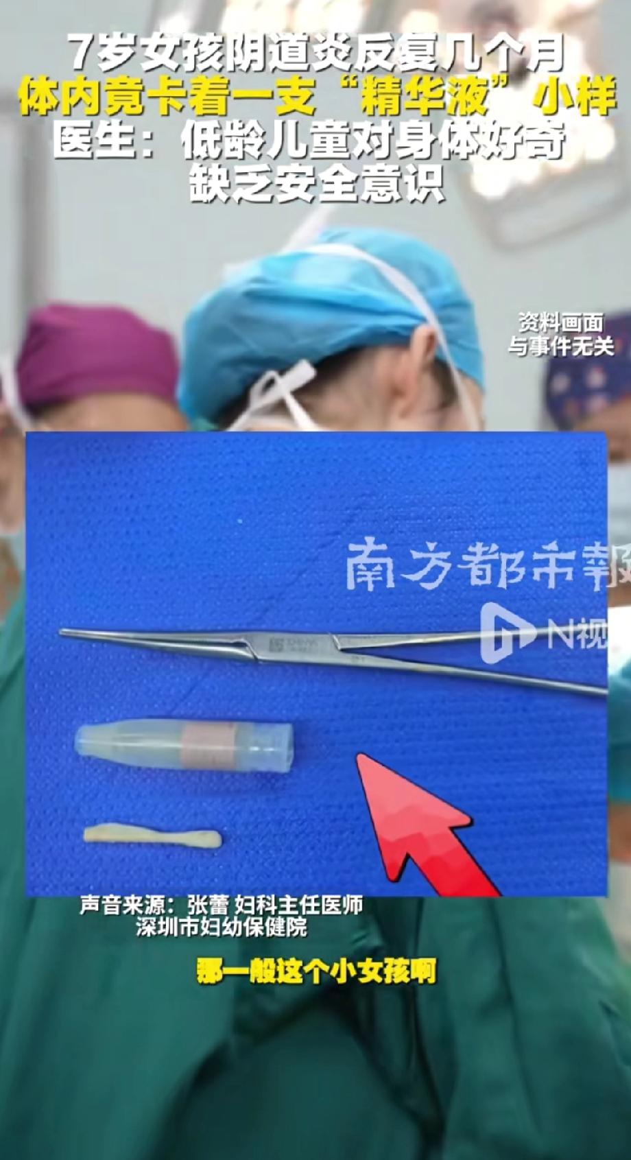 吓出一身冷汗!广东惠州,一名7岁女孩下体不舒服,以为抹抹药就好了,可孩子阴道炎反反复复一直没好。妈妈察觉到不对劲,带去深圳检查,医生竟从孩子体内取出完整的试用装精华液!