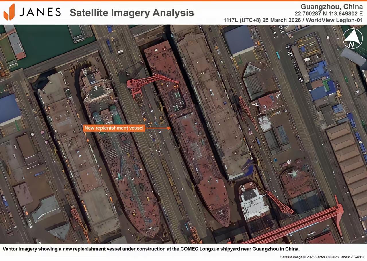 乖乖!!!7万吨级的补给舰!英媒称,根据最新卫星图像显示,这艘在建的补给舰长度达