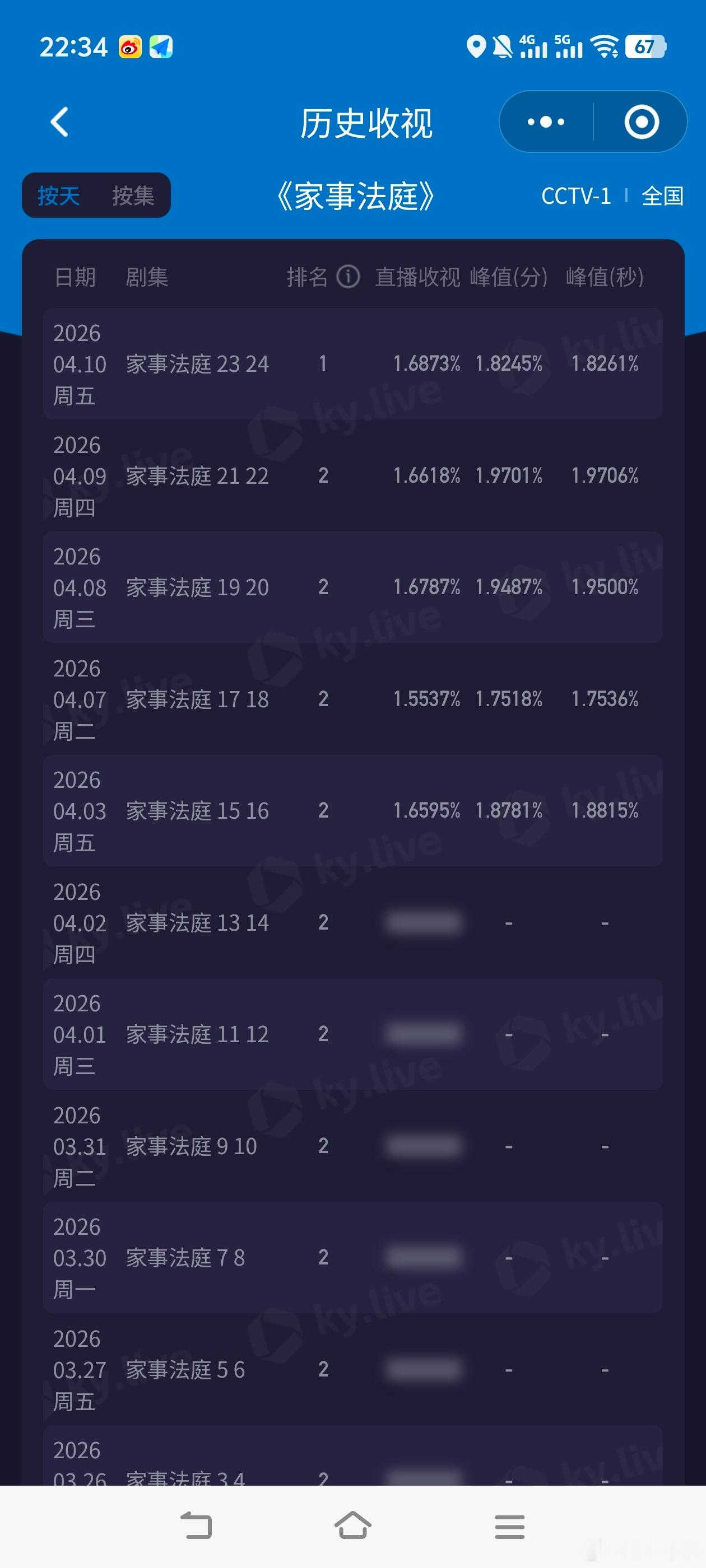 家事法庭 周五加更收视又新高了!!今晚酷云峰值1.8261,平均1.6873!破