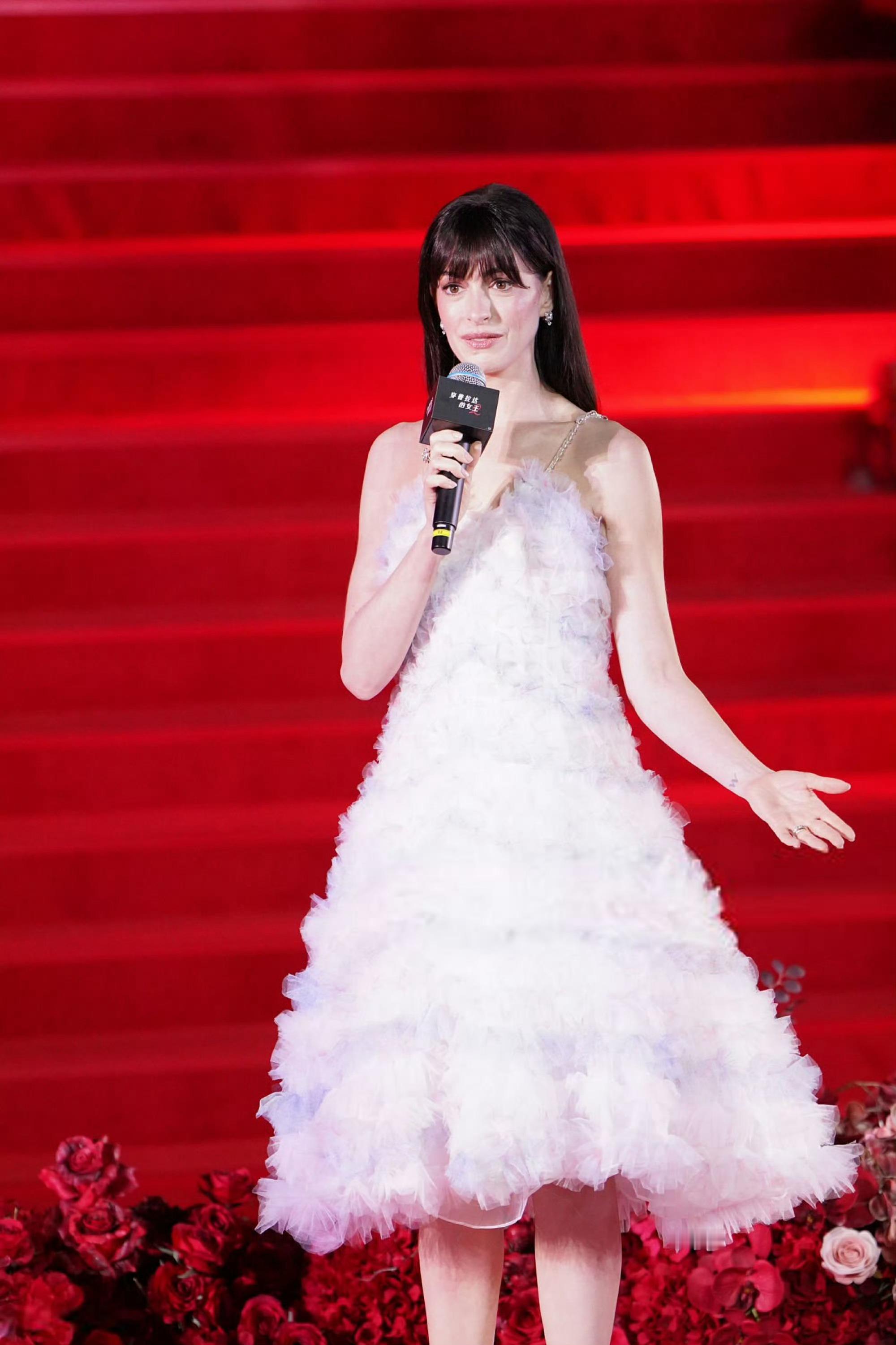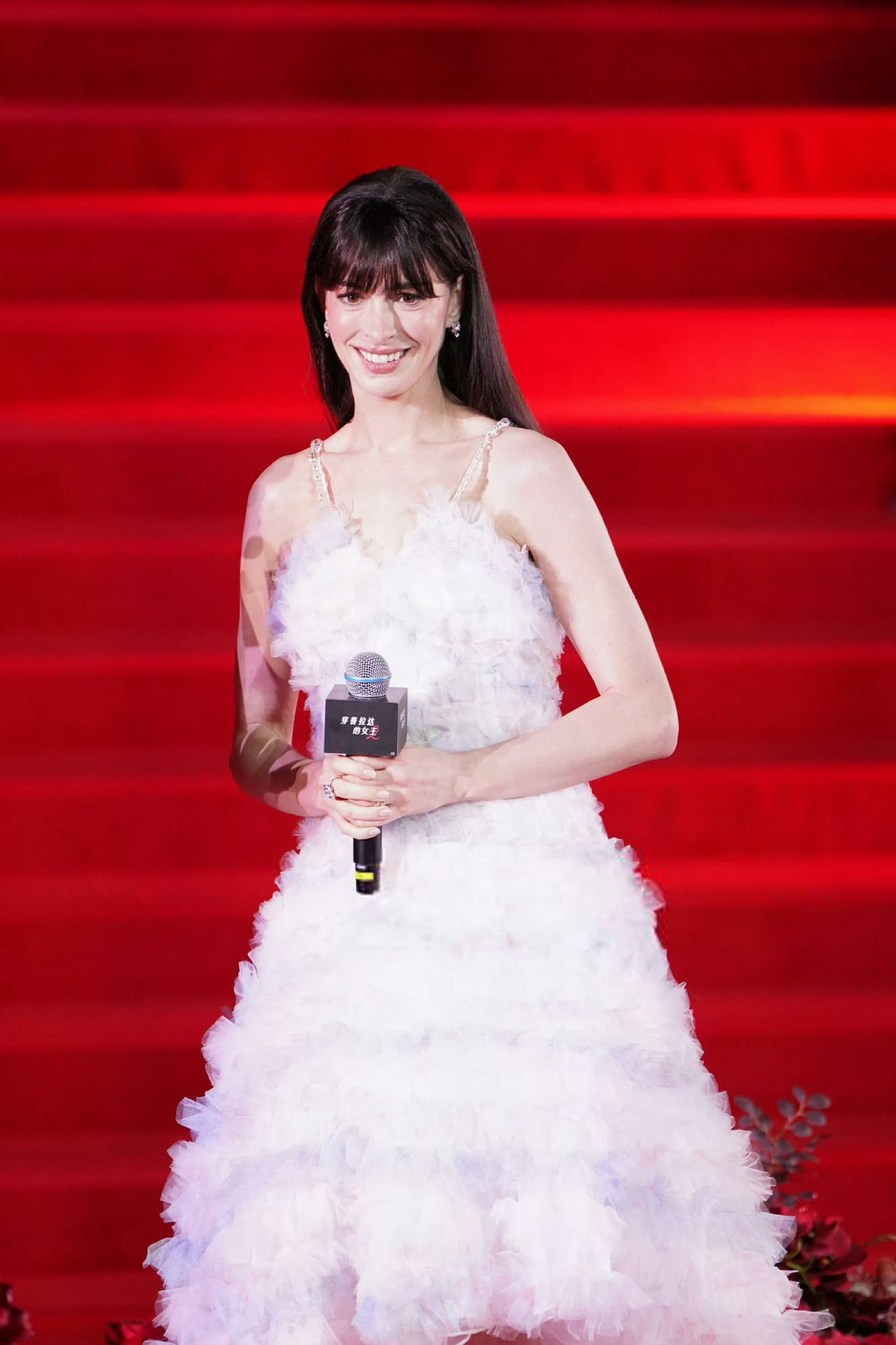 安妮海瑟薇新造型亮相《穿普拉达的女王2》上海首映礼《穿普拉达的女王2》中国首映礼安妮海瑟薇裙子出自中国设计师之手