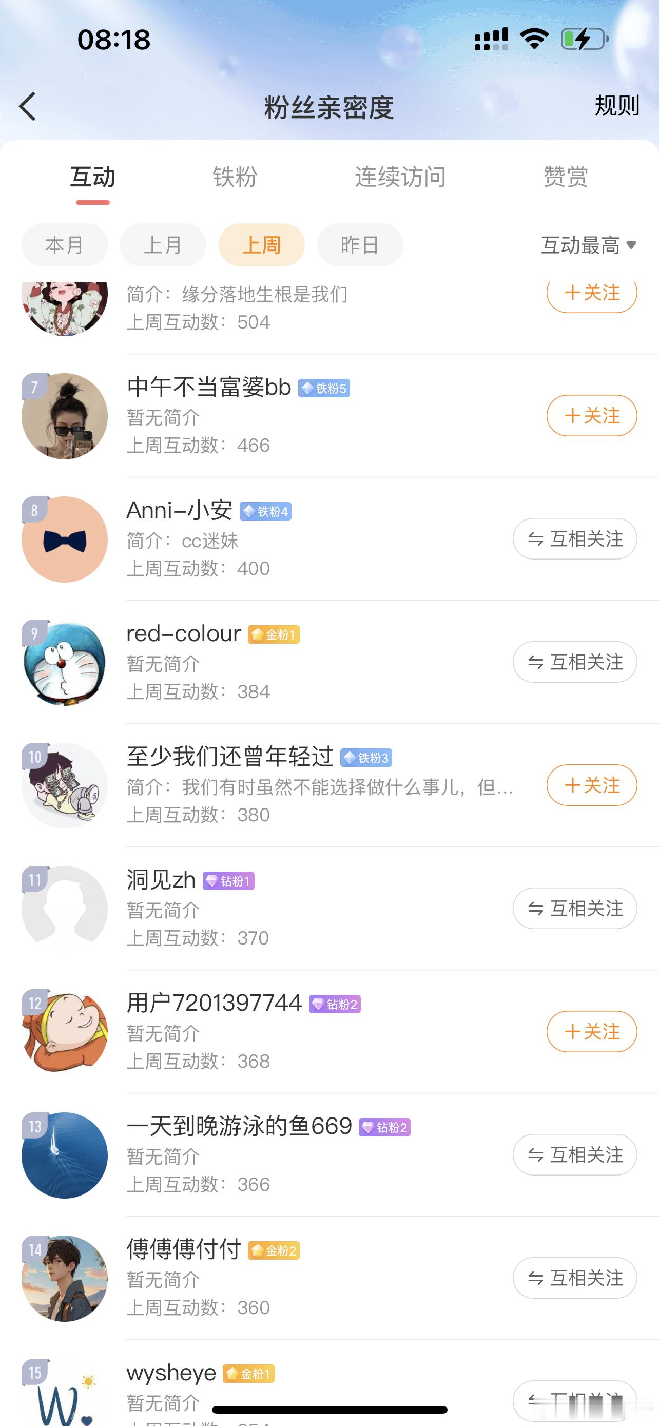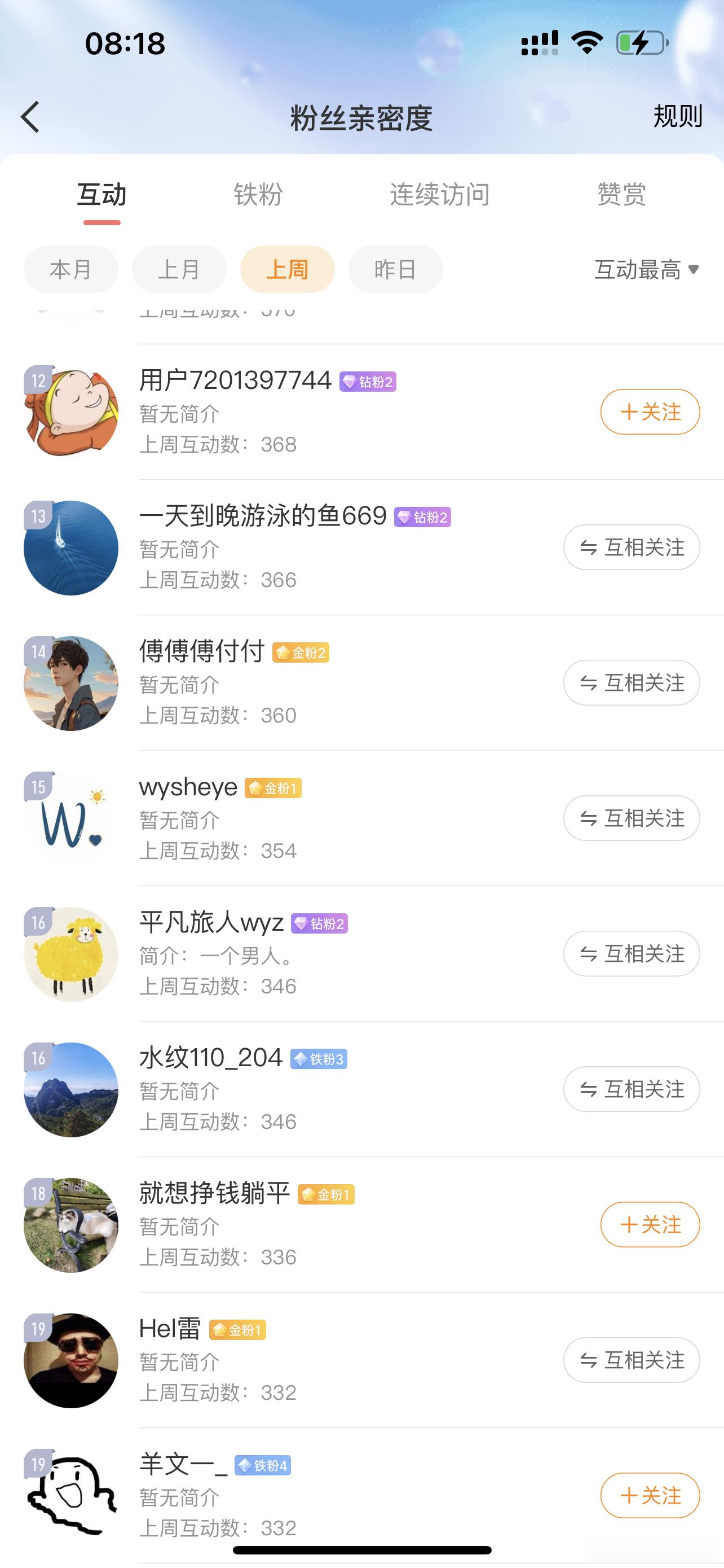 周末了也别忘记互动,保持好铁粉还不是超级铁的朋友,抓紧时间成为超级铁,每周一换,