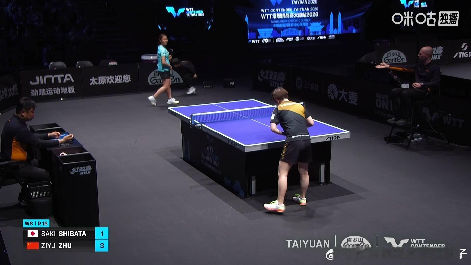朱梓予3比1芝田沙季(8,10,-9,8)晋级2026WTT太原常规挑战赛女单八