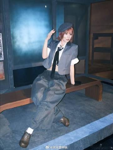 黄灿灿一公造型 报童帽造型的黄灿灿,甜美灵动,元气满满,仿佛把民国画报女郎的优雅带到舞台上来了。