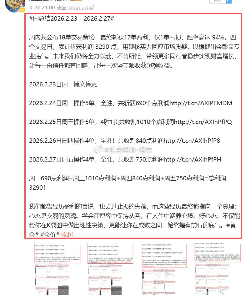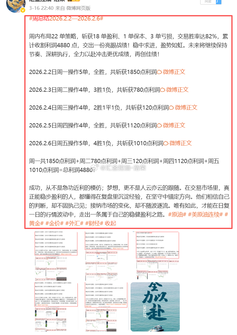 2月剔除春节假期博文停更,共参与 11 个交易日,布局 47 单策略,斩获 42 单盈利、1 单保本、仅 4 单亏损,交易胜率高达 89%,累计盈利 10390 点!投资路上暂时不顺的朋友,不妨先放慢脚步,静下心找到属于自己的交易模式。不必急于频繁操作,更不必盲目进场,稳健把握看得懂、抓得住的行情,才是长久之道。