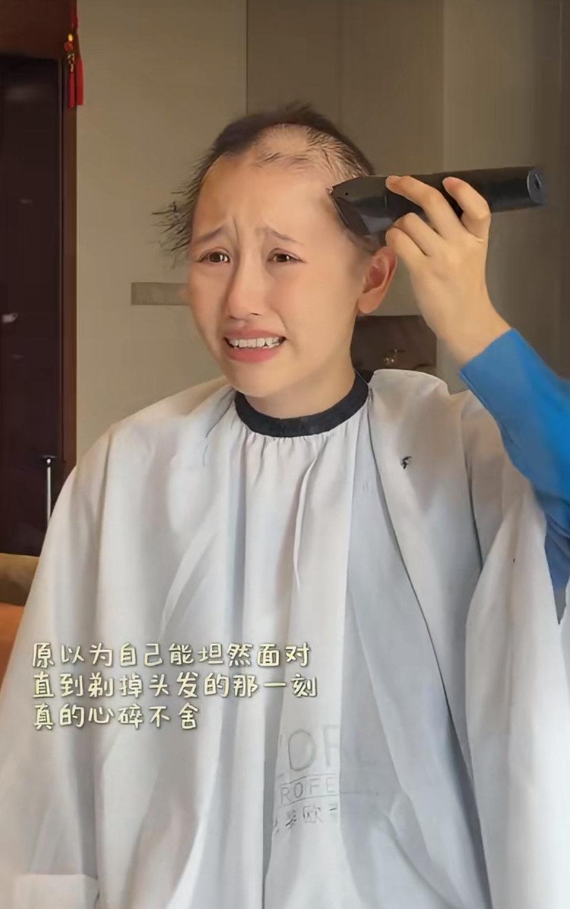 4月10日,她公开剃光头视频,配文“光头的第一天,感觉还行”。今年1月,她确诊经典型霍奇金淋巴瘤III期,需完成12次化疗,目前已进行4次 。因化疗严重脱发,加上天气渐热,她选择主动剃光陪伴30年的长发 。