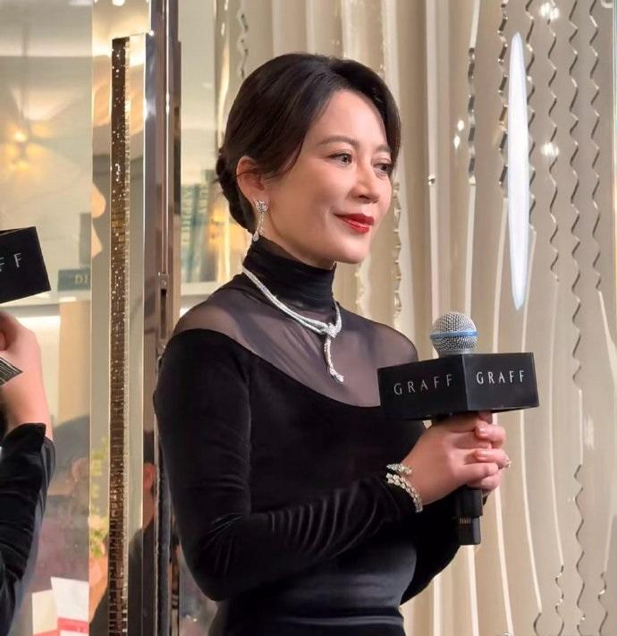 今天俞飞鸿在出席时尚活动的时候搭配了一件黑色的绒面裙,尽显优雅高贵之美。