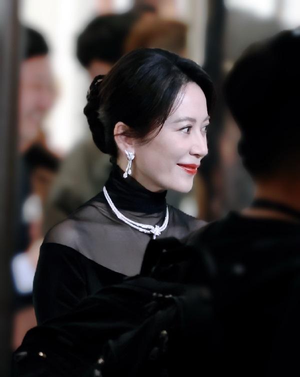 俞飞鸿挽着超美的秀发,还画着精致的妆容,越变越有吸引力,不得不说俞飞鸿是个不老女神啊。