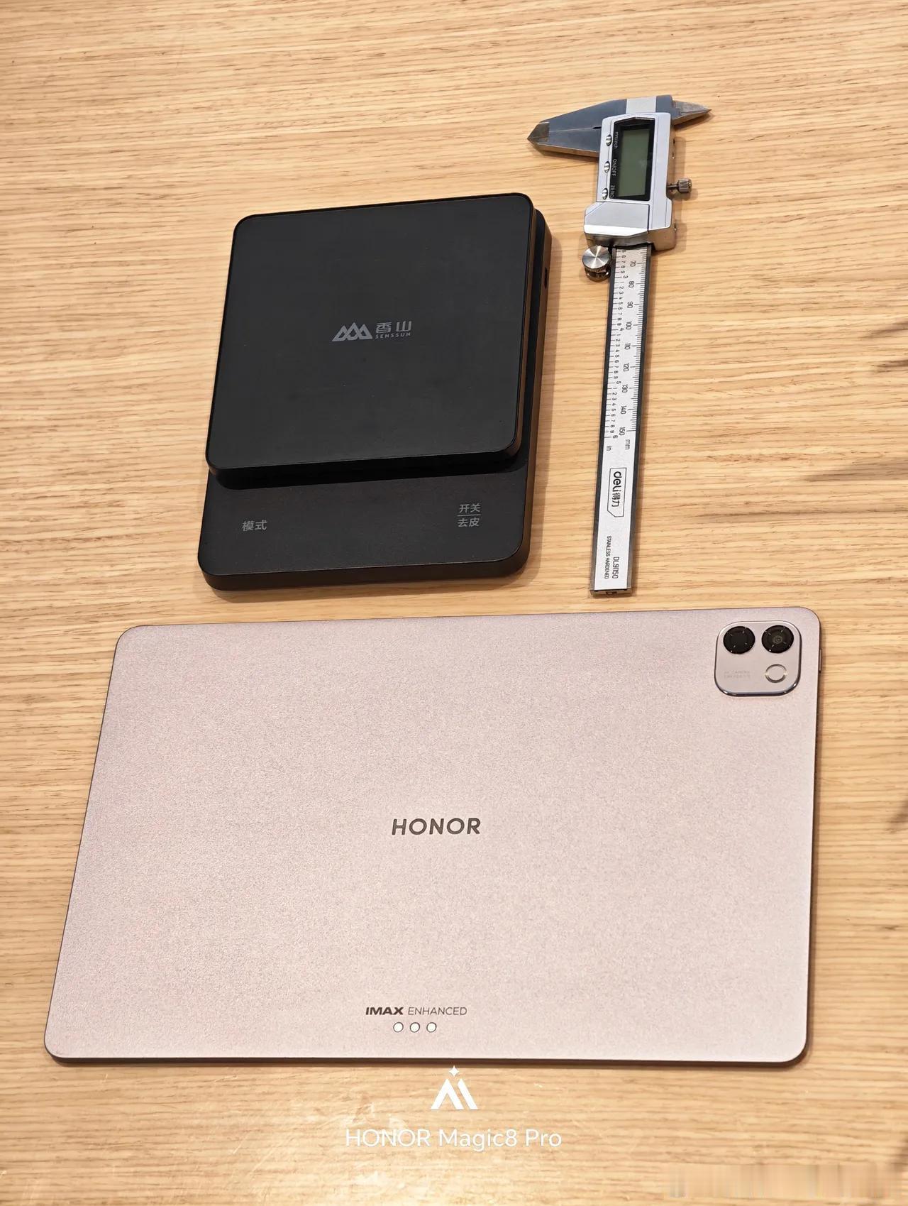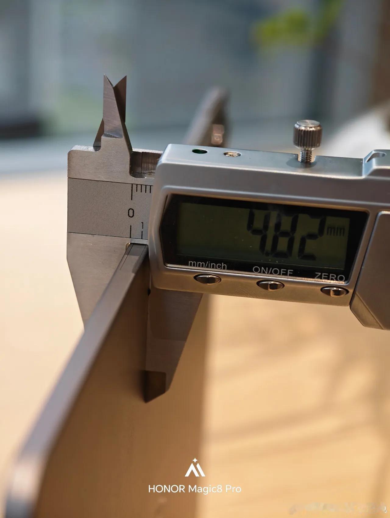 主打就一个词:轻薄。游标卡尺一量,4.82mm厚,440.5g重——别看主打轻薄,Magic系列在荣耀定为位旗舰,所以说性能也很强悍。