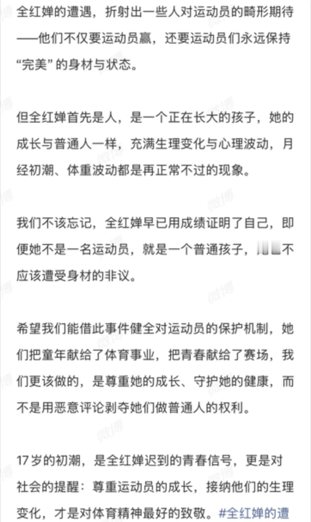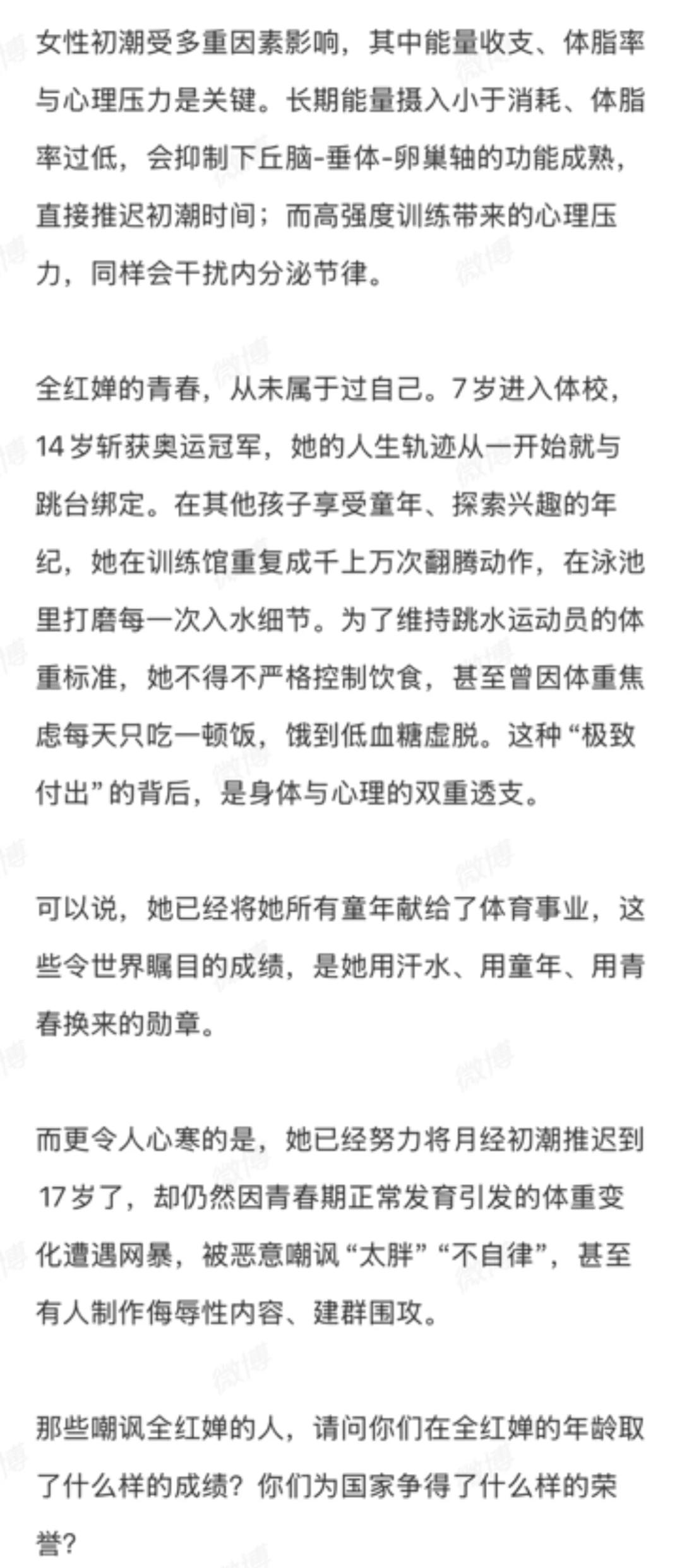 道出了全红婵的健康状况,