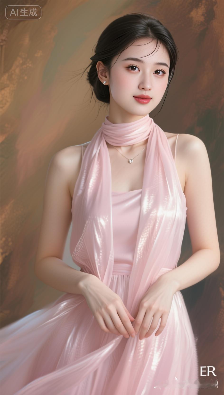 温柔粉裙,优雅气质,AI生成,梦幻少女