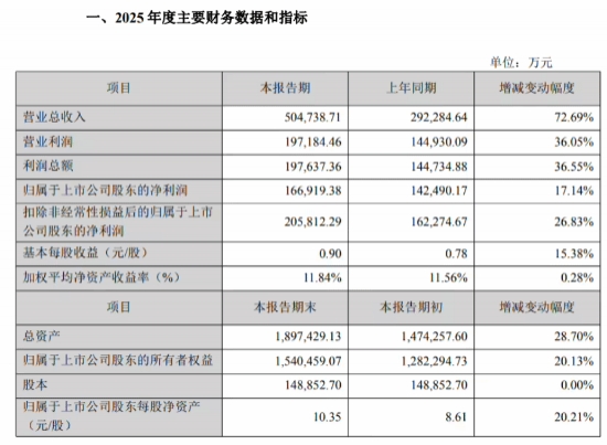 归属于上市公司股东的净利润16.69亿元,较上年同期增长17.14%;