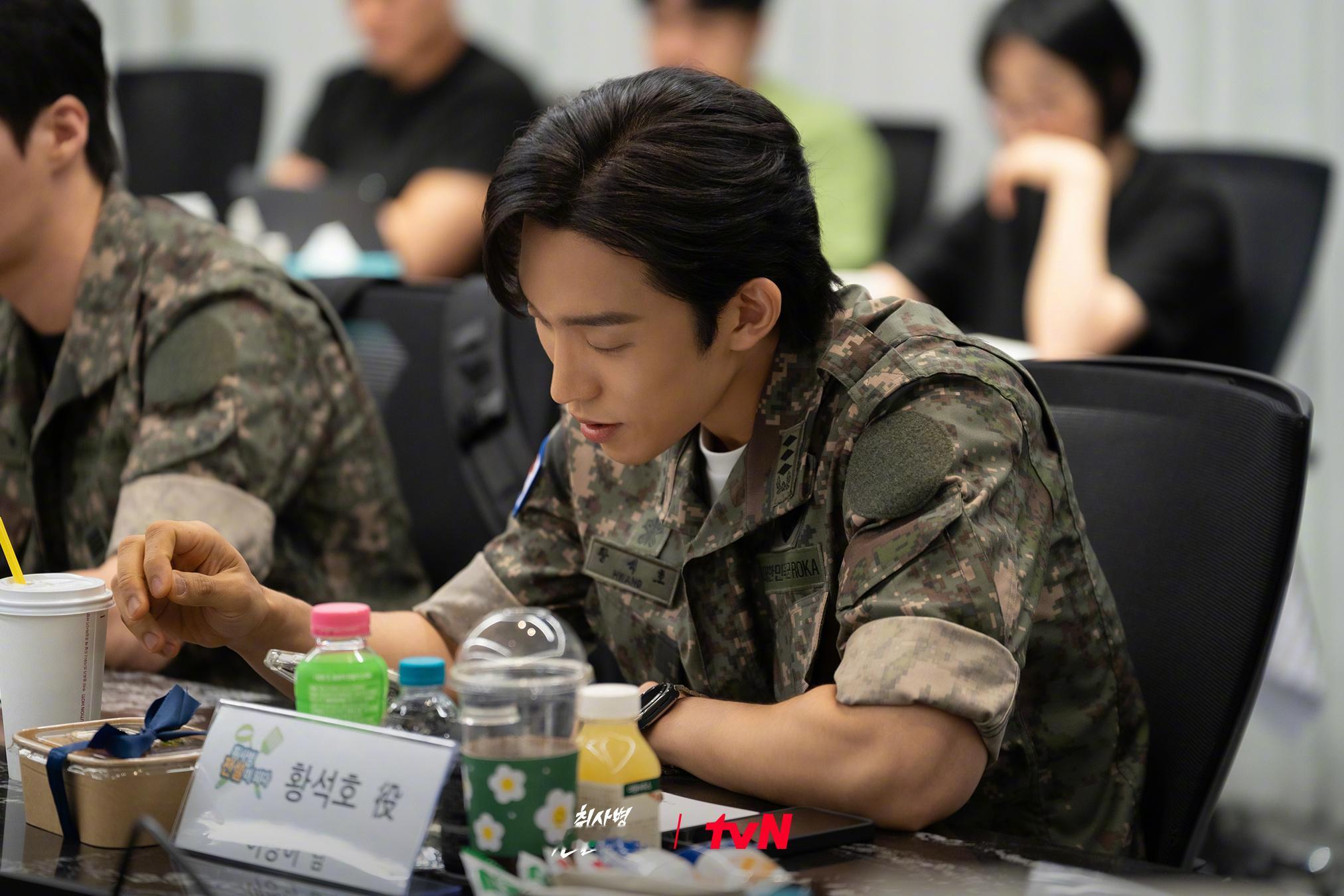朴志训尹敬浩韩东希李宏内李相二 主演TVING/tvN新月火剧菜鸟伙房兵 公开剧本研读照。