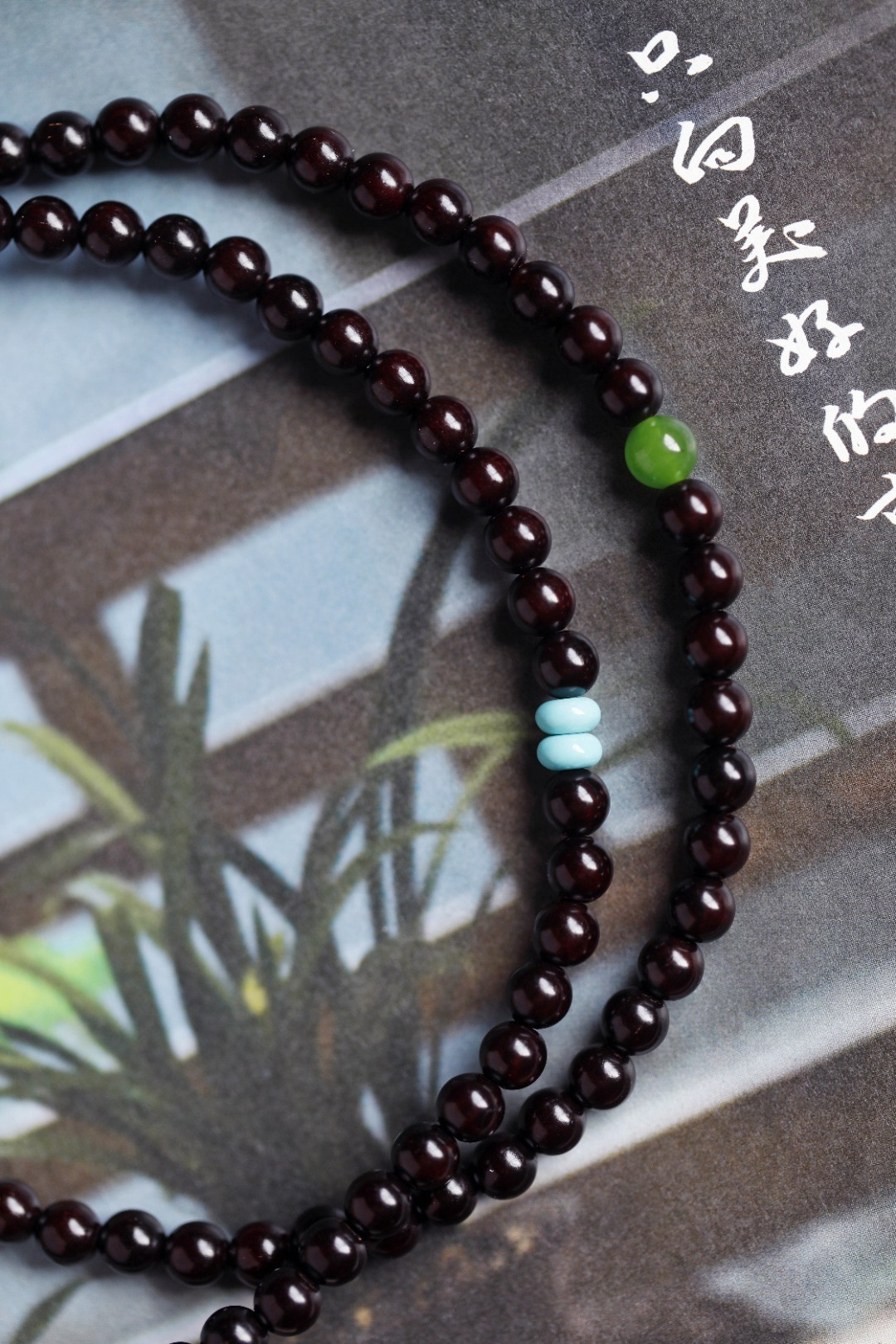 配件:干青、松石、玉髓、玛瑙 紫檀 原创【青颜】6mm 108颗