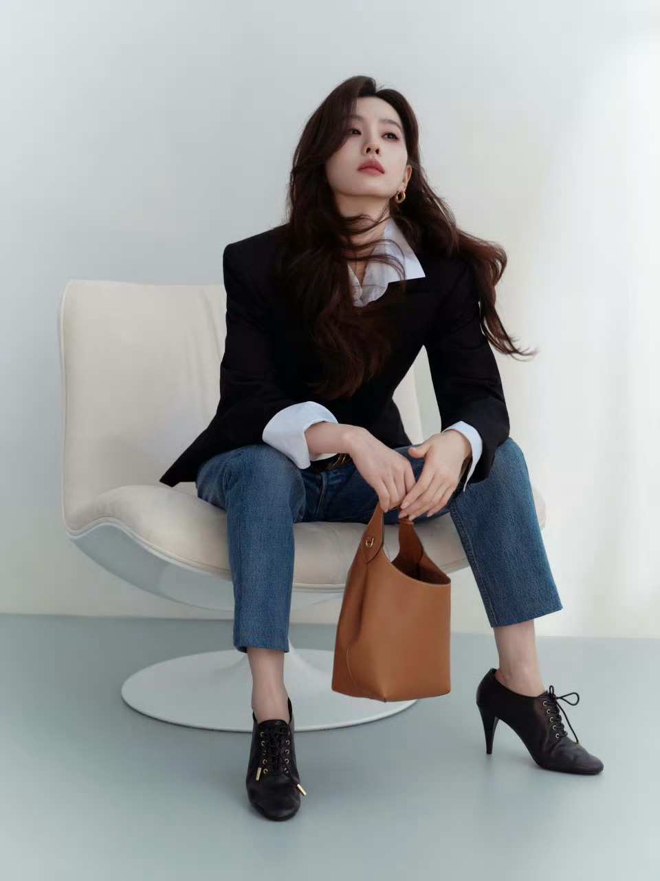 刘诗诗 in CELINE 📷 今日上海活动造型图,身着26夏季系列,西装搭配牛仔裤,复古摩登风尚。时尚灵感解读刘诗诗送朴宝剑宝瓶花