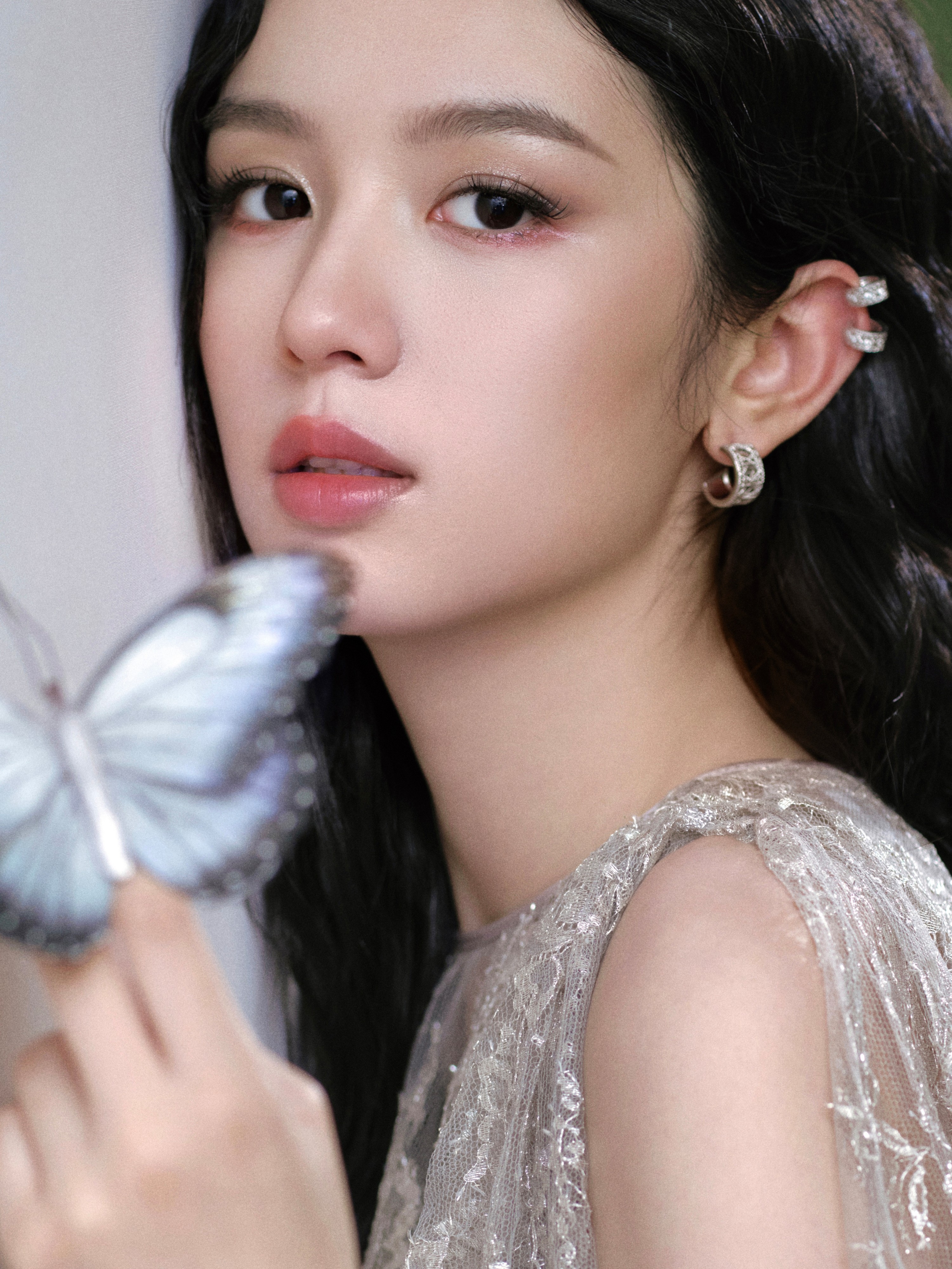 周也身穿Dior 2026春夏系列裸色蕾丝刺绣纱裙出席电影《穿普拉达的女王2》中国首映礼