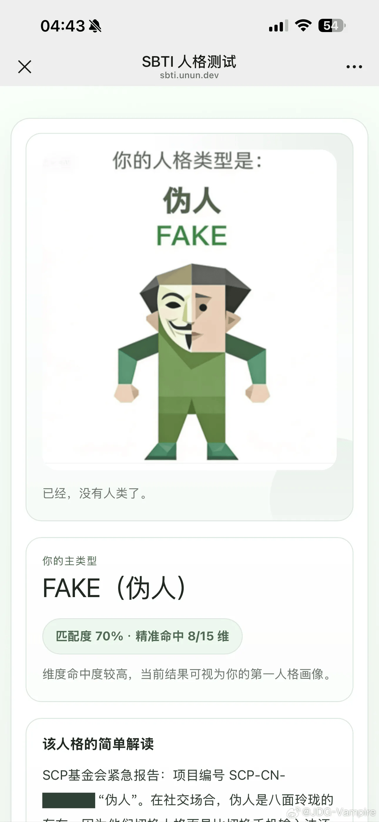 虎扑04月10日讯战胜AL后,Vampire分享SBTI测试并配文:兄弟们打得太好了明天继续加油!大家都是什么?