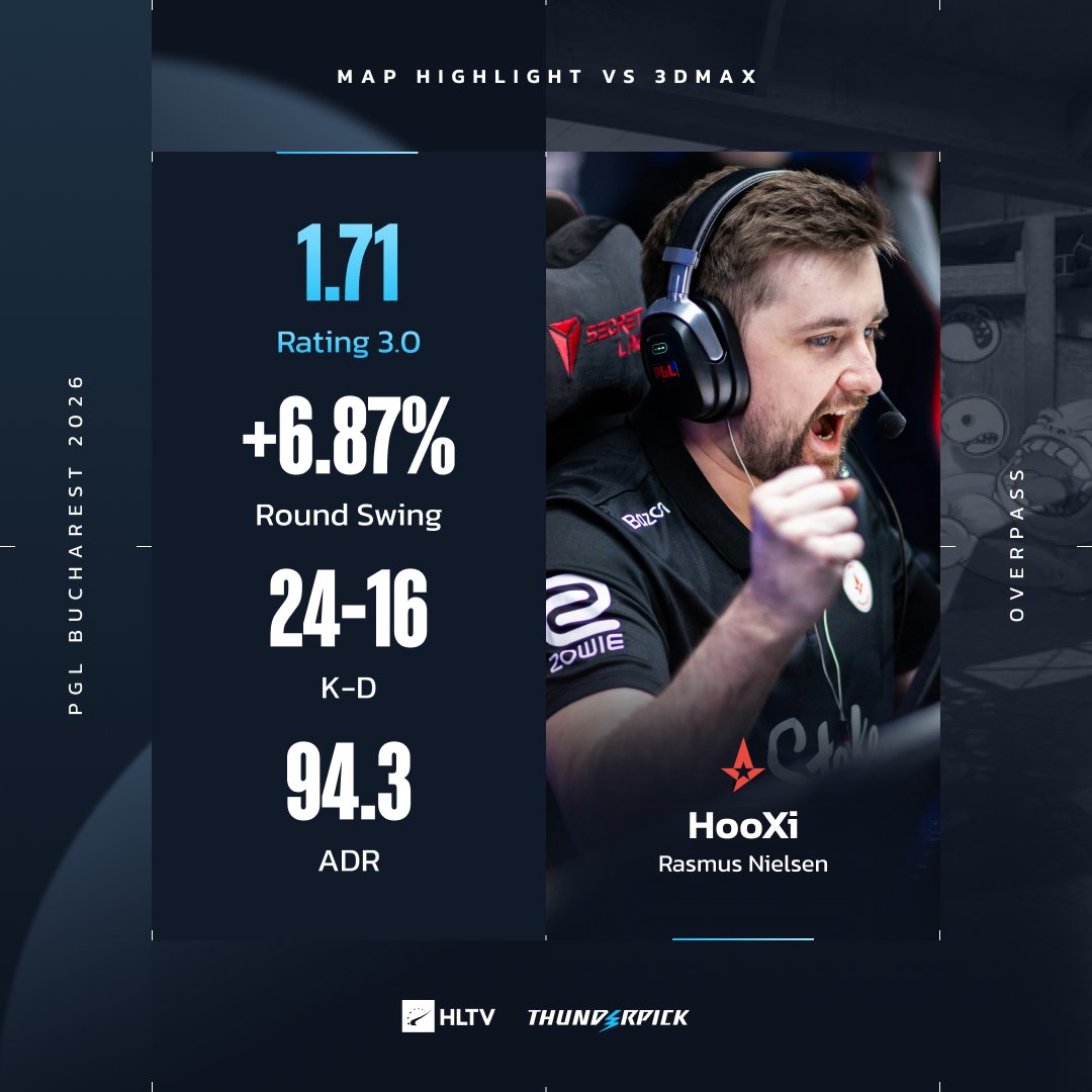 团队数据方面,Astralis团队rating为1.19,优于3DMAX的0.96;首杀数以11-12稍占劣势,残局以3-0完胜对手。个人表现上,Astralis的HooXi砍下24杀、10助攻、94.3ADR,以1.71rating领跑全场;phzy贡献23杀、14次AWP击杀,rating1.44;jabbi也有14杀入账。3DMAX方面,Lucky空砍18杀11助攻,rating1.23;misutaaa和Ex3rcice分别有18杀和15杀,但全队未能赢下任何残局,关键时刻屡屡失手。随着拿下自选图,A队挺进布加勒斯特决赛舞台。