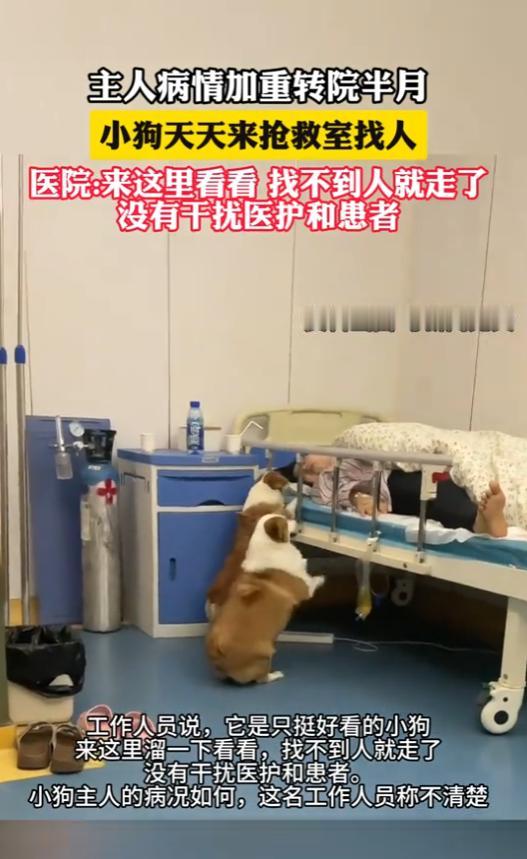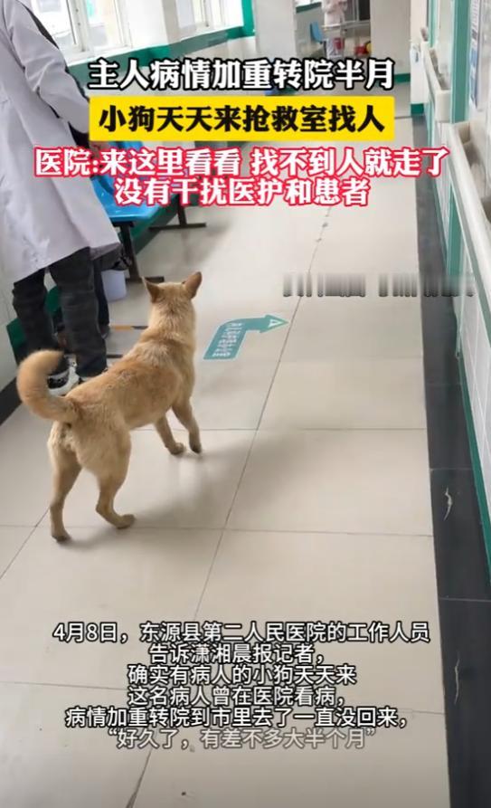 (信息来源:《主人病情加重转院半月,小狗天天来抢救室找人近日,广东河源。主人病情加重转院半月,小狗天天来抢救室找人。医院:来这里看看,找不到人就走了,没有干扰医护和患者。》时代财经)