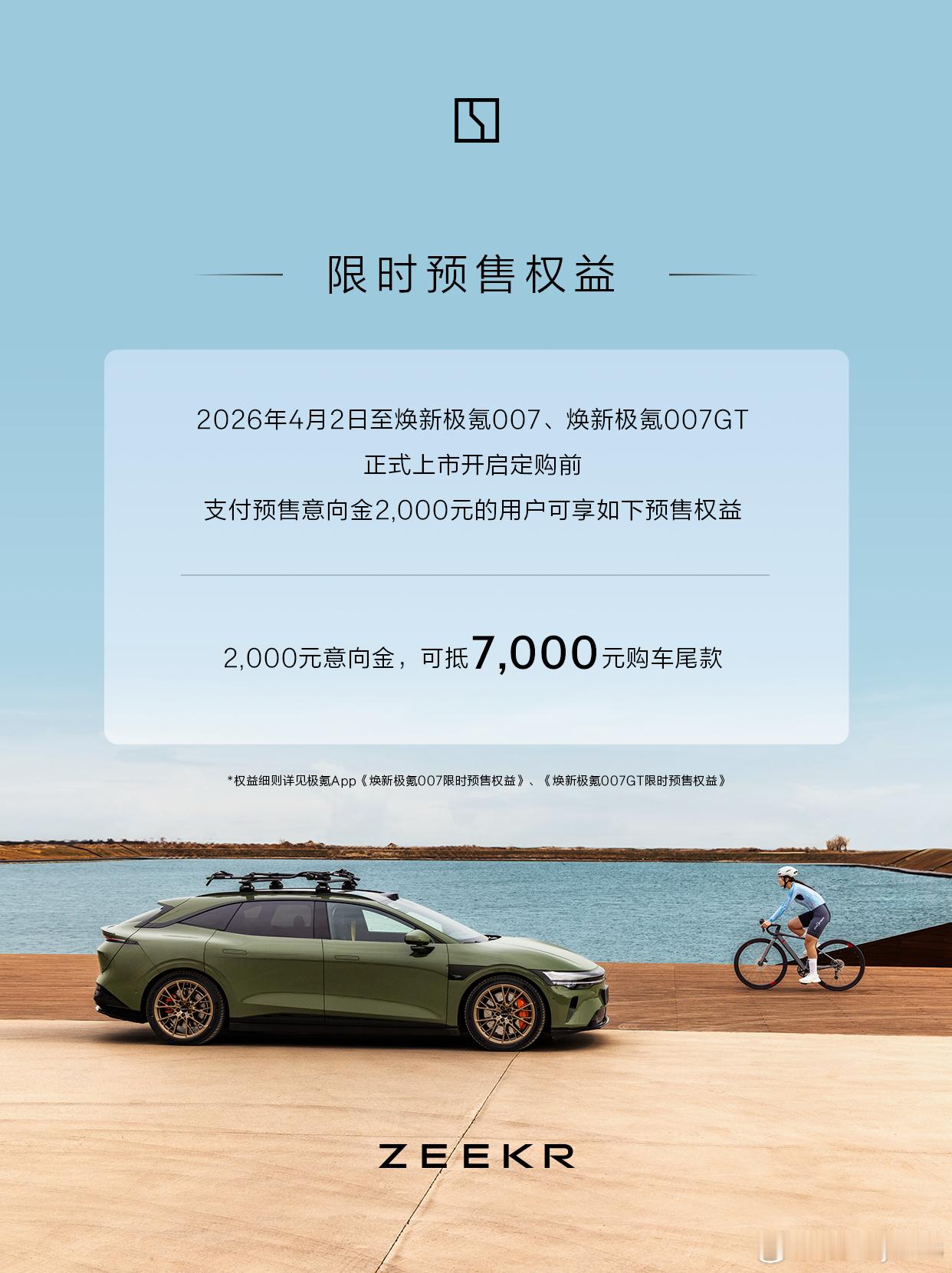 极氪焕新7系正式上市了,007和007GT上市权益后限时价都是19.39万-23