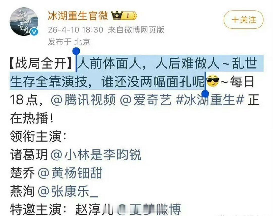 冰湖重生剧方新发的这条文案被指阴阳怪气疑似回应赵丽颖工作室,然后删除了,显得很心