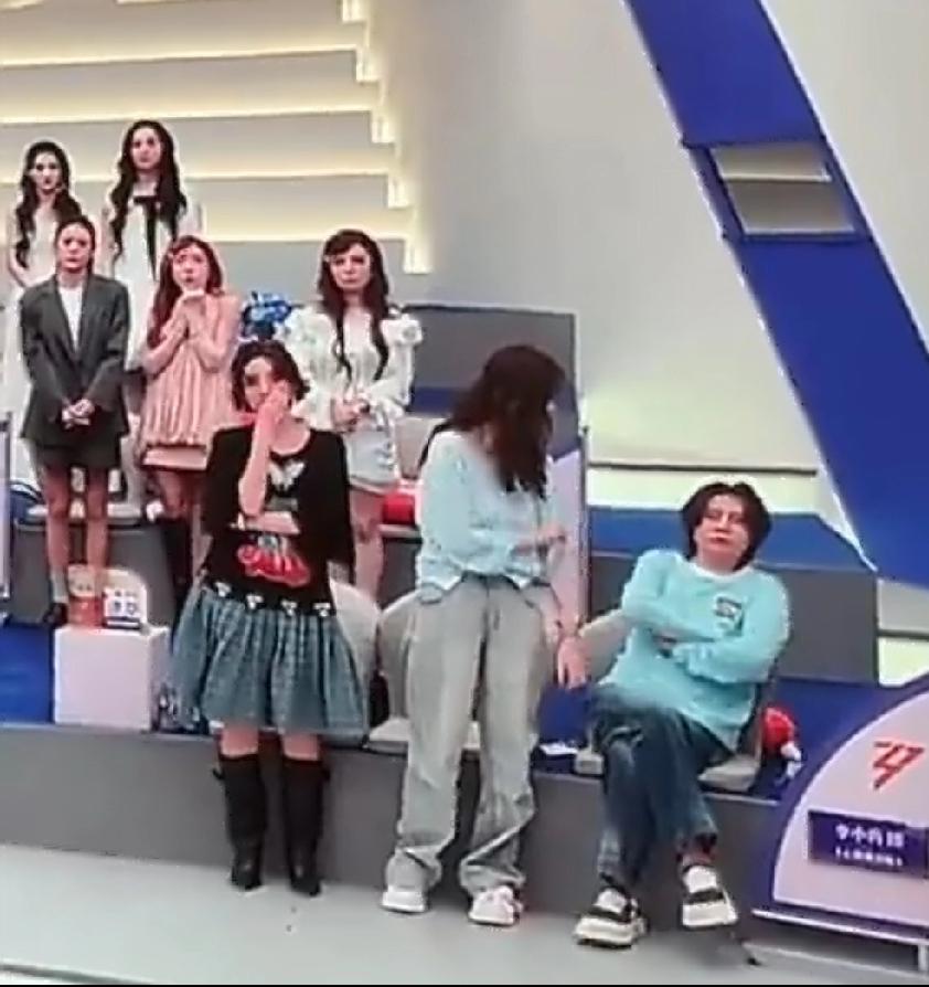 王濛看到孙怡组的赵子琪被淘汰,一脸不爽,在其他姐姐都站起来以表达对赵子琪的惋惜,只有王濛双手抱胸冷脸坐着不动。