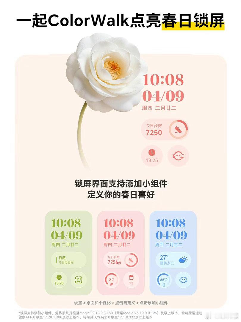 MagicOS 4月更新太会了,colorwalk 主题,锁屏瞬间变春日画报!官方壁纸美翻,花朵指纹解锁超治愈,连状态栏都能随心情换皮肤~