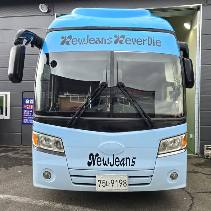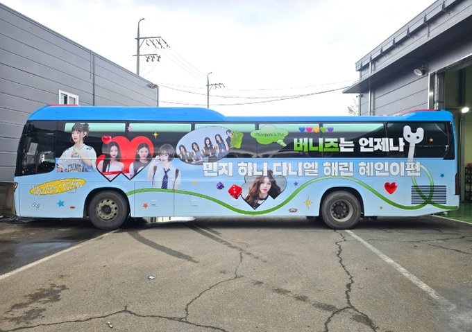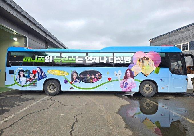 运营NewJeans成员Minji、Hanni、Danielle、Haerin、Hyein的包装巴士,为她们加油打气。