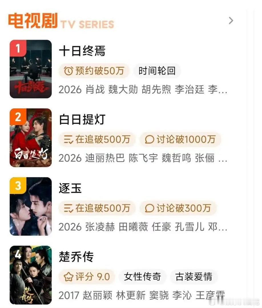 腾讯爱奇艺楚乔传搜索榜电视剧榜已进前五《冰湖重生》真的又让《楚乔传》重新火了啊...感觉论长尾没有人比得过赵丽颖吧