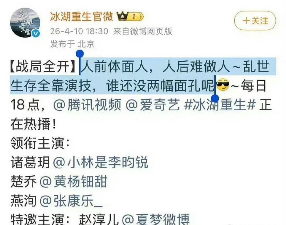 冰湖重生官微删博omg冰湖重生这是在内涵赵丽颖工作室?2026年也太热闹了吧