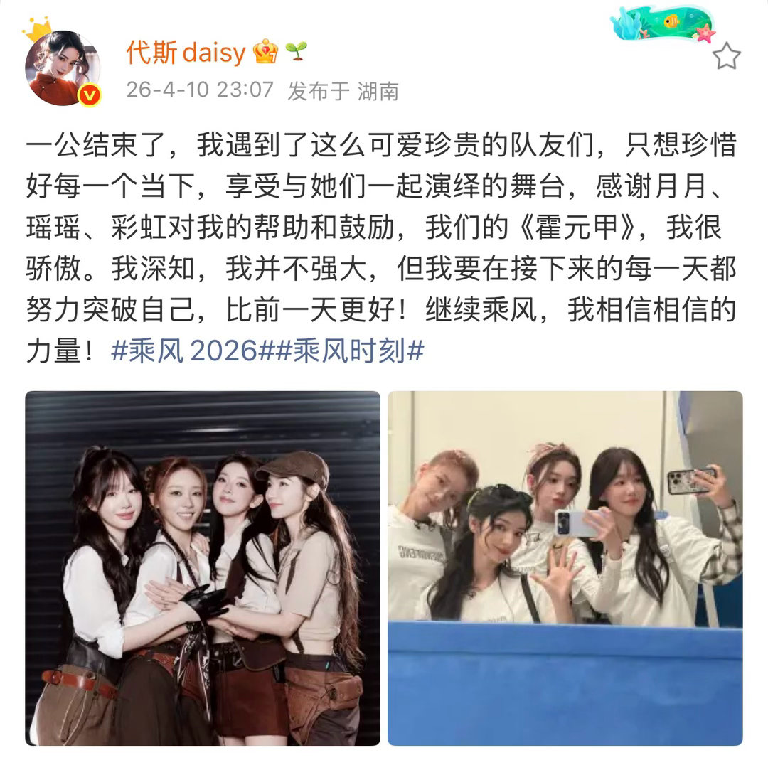 代斯一公感言代斯感谢陈瑶张月徐梦洁 一公舞台表演结束,代斯发文感谢陈瑶张月徐梦洁