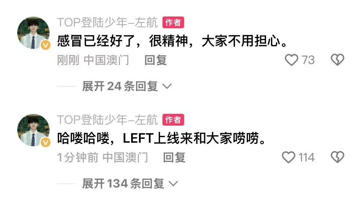 左航感冒已经好了 左航要继续彩排了左航感冒已经好了~期待明天舞台