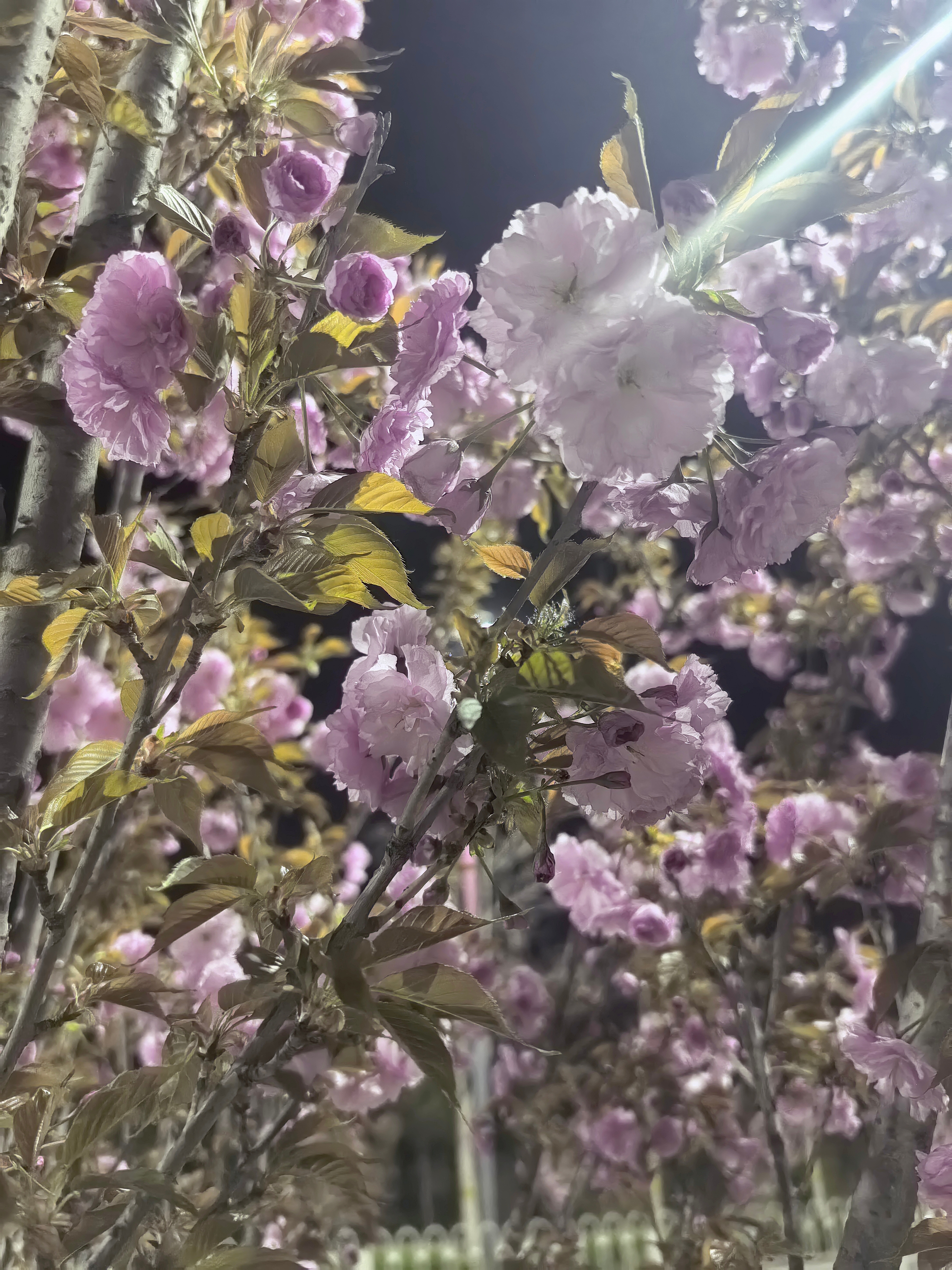 昨晚晚饭过后出去散步,被路上的吸引真好看,看来花期要过了叶子都长出来了,拍个照片记录一下!迎来周末了好好享受吧,晚安💤