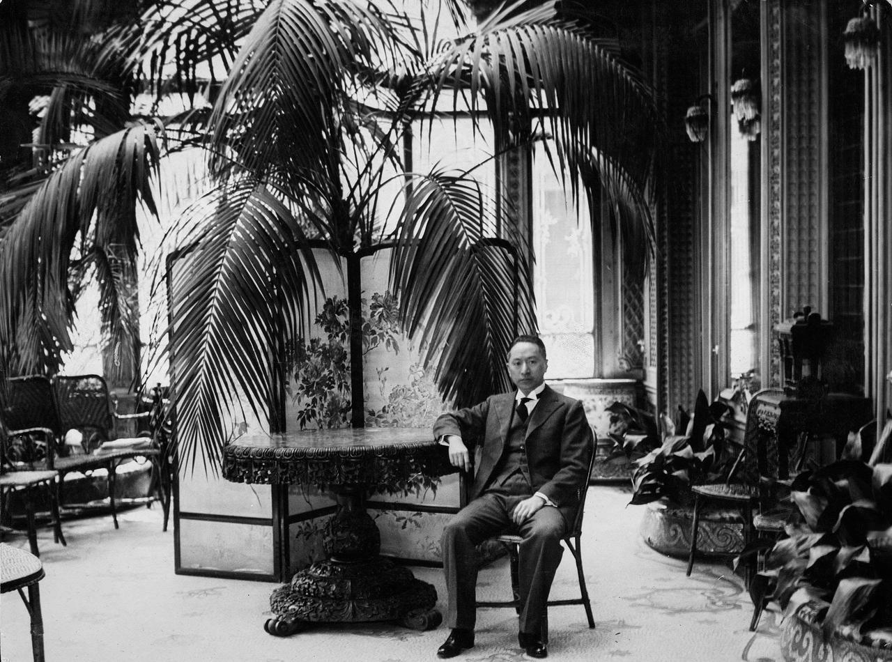 20世纪20-30年代,照片中的男子是民国第一外交家顾维钧,他身着西装,搭配白衬衫、黑领带、黑亮皮鞋,坐姿放松、沉稳的神态,是典型的西式肖像照摆拍。