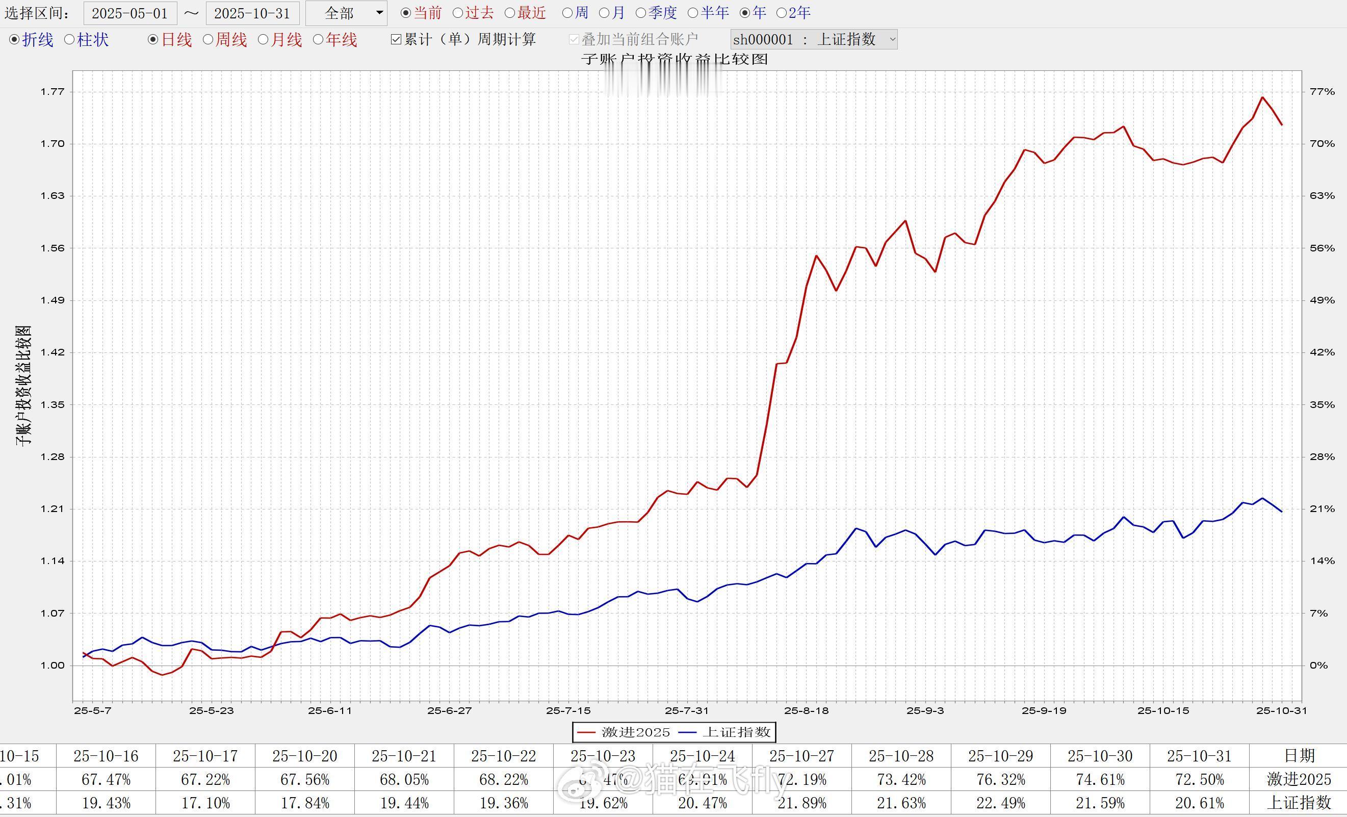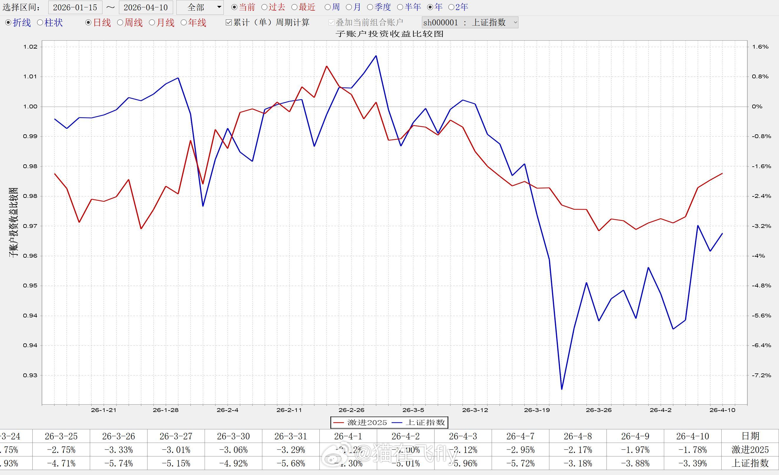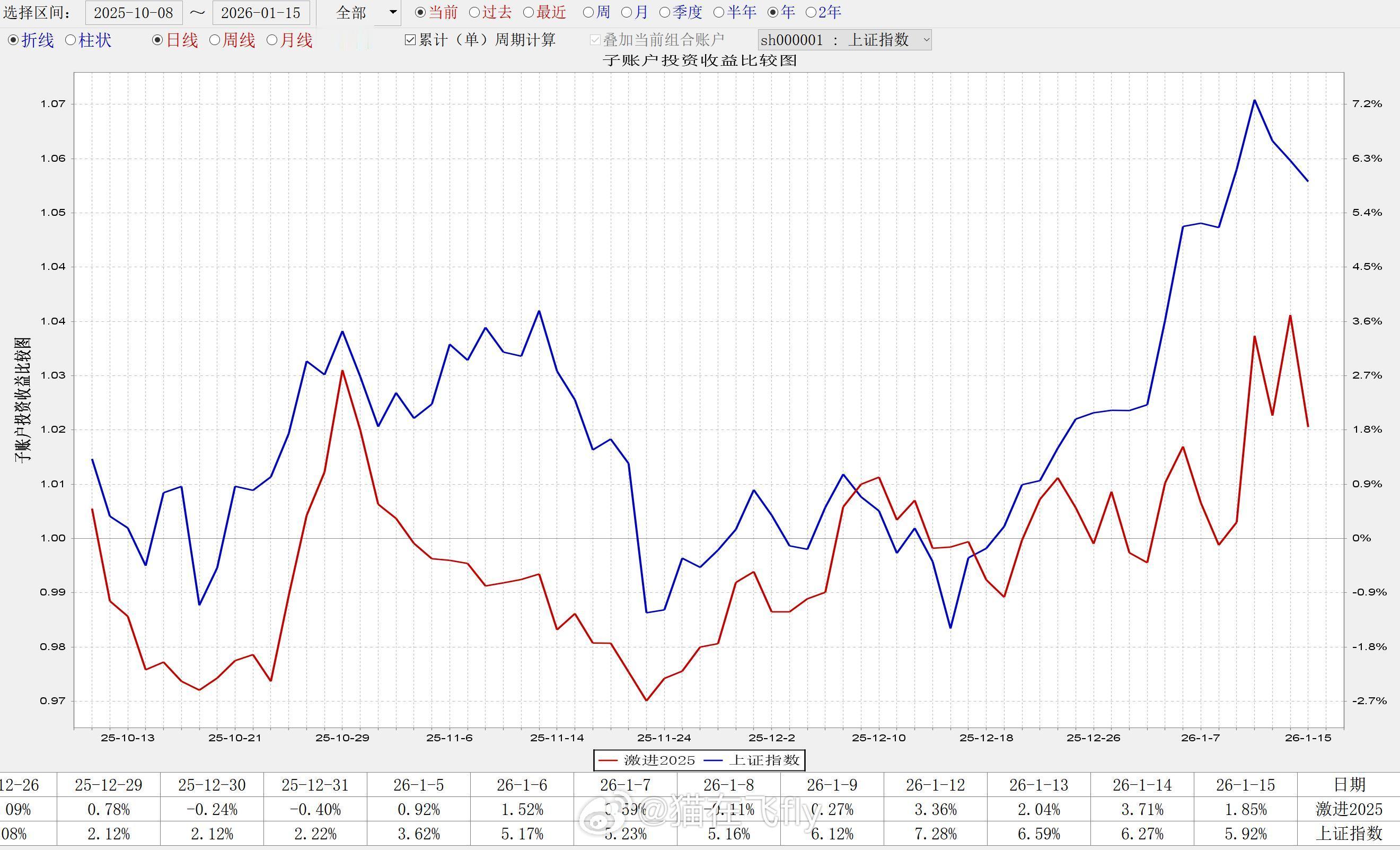 一位老哥来续学费说最近做的不太好,需要做做心理按摩让他把自己一段时间的交易结果发过来,对照着盘面聊了一会应该是找到一些问题,经他允许,也给大家分享一下朋友们也可以按照这个思路,分析分析自己的账户相信对大家会有些帮助----------------具体做法是:把最近一年的市场分为3个区间1、2025年5月1日-2025年10月31日2、2025年10月8日-2026年1月15日3、2026年1月15日-至今 这3个区间,可以大概说明3个阶段,没有那么精细哈,大概第一个区间是这波整体上涨的区间 这个区间是AI硬件的主升期,代表了你在市场主升期的赚钱能力。第二个区间是市场震荡的区间 这个区间是主线震荡分支补涨的区间,如果你是题材打法,这个区间需要再细分一下,11月27-1月15日,这个区间是商业航天的主升期,也就是说做题材的朋友这个阶段是必须大赚的。第三个区间是市场震荡下行的区间 这个就不用多说了吧,调整阶段,这个阶段看的是你的控制回撤的能力。---------------------- 懂了这个区间,再一看交易结果就清晰了 老哥的实盘交易结果是图1:78.37%、6.32%、-17.6% 猫的模拟教学结果是图2-4:72.5%、1.85%、-1.78% 这么一看是不是就很清晰了,猫的能力圈是主升阶段能抓到趋势主线,控制回撤的能力也是完全没有问题,做的不好的地方是市场震荡区间以及题材主线,这块还需要加强。 老哥的问题呢,控制回撤的能力差一些,在下跌阶段容易幻想。 对交易结果分析找出交易上的问题并纠正优化,是我们必须做的事。 是个福利帖吧。。多点赞互动哦,周末愉快~